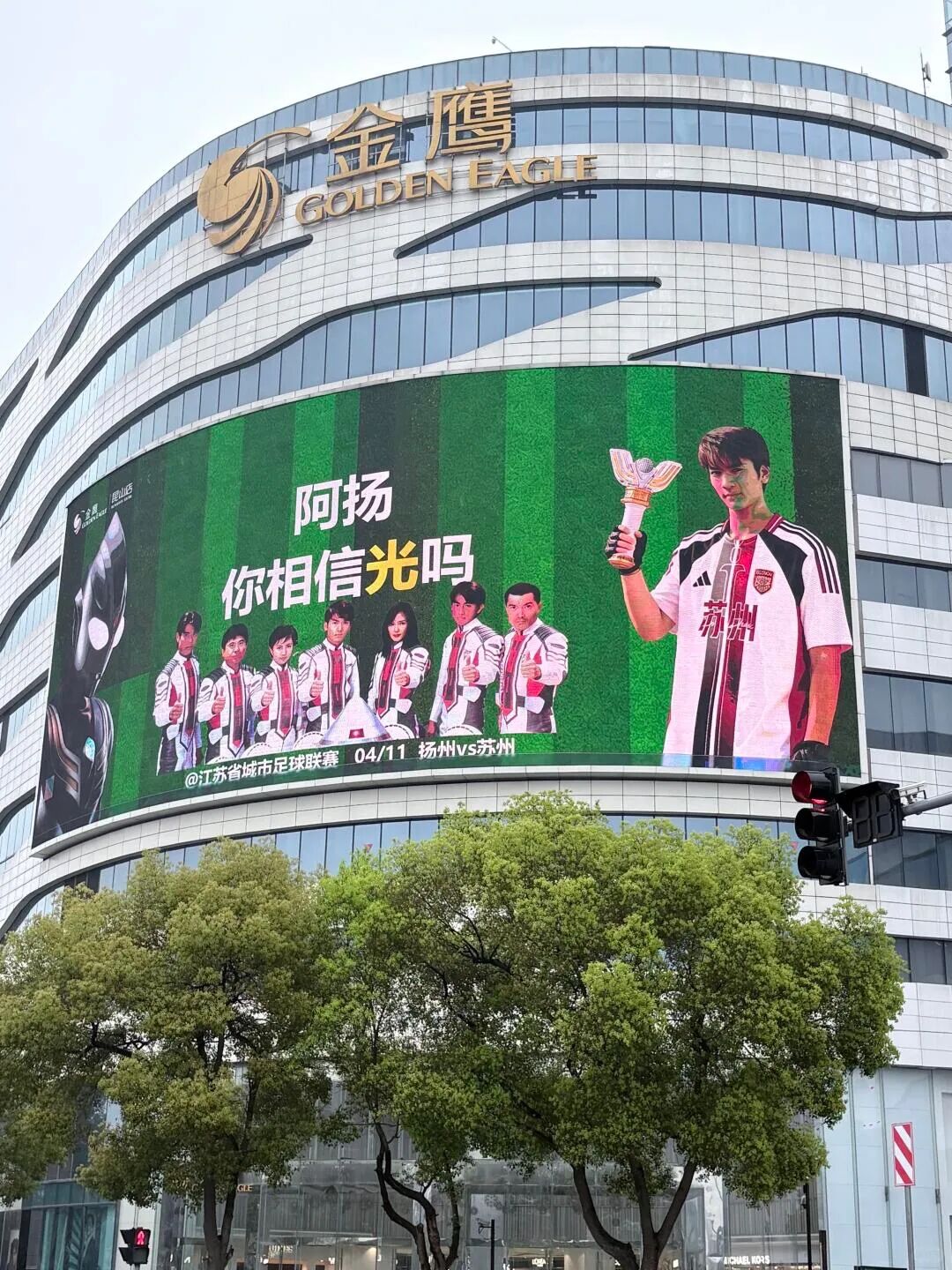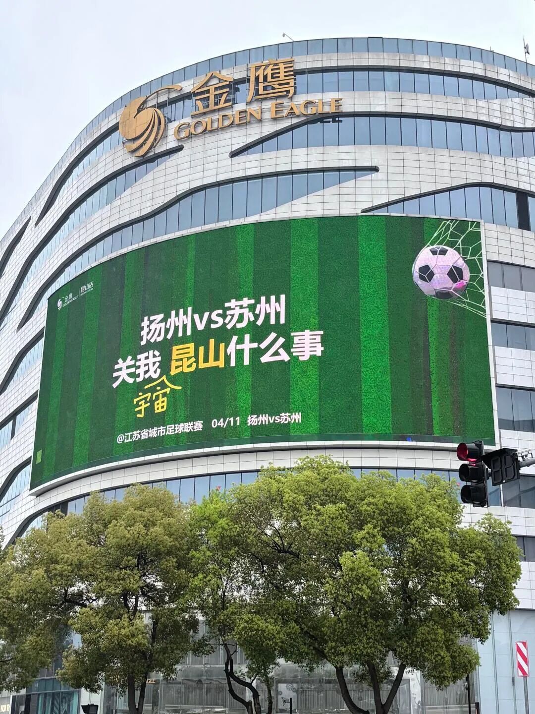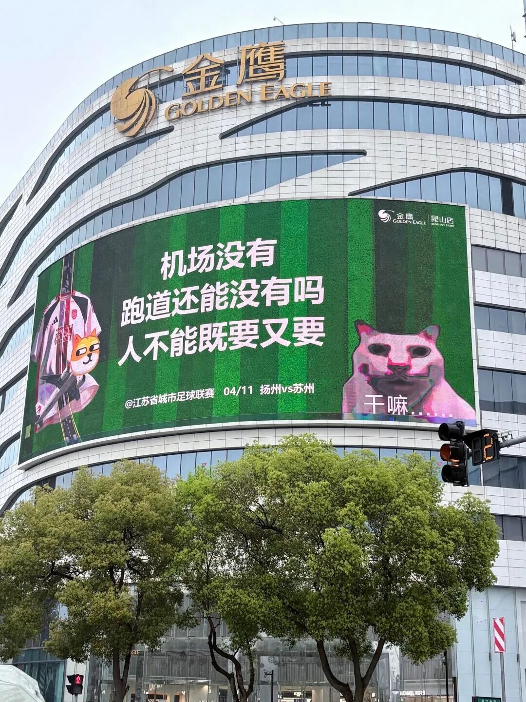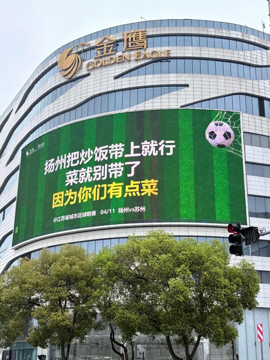 于是昆山金鹰商场火速接下网友的梗,摆出一副看热闹不嫌事大的样子吐槽扬州队的队服: