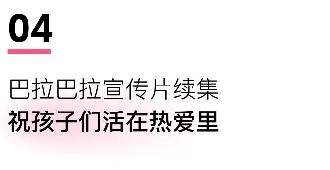 巴拉巴拉在去年推出宣传片《中国小朋友》,从成长陪伴者balaT的视角,记录孩子们成长的勇气,聚焦那些隐秘而伟大的时刻,今年,巴拉巴拉和学习强国推出《中国小朋友2.0》,以balaT的口吻,祝孩子们都有自己的热爱。品牌方花费许多力气找到多位兴趣各异的“小演员们”,有爱跳街舞的、爱唱摇滚的、爱跑步的、爱昆虫的、爱滑板的……这背后当然也少不了他们爸爸妈妈的爱与支持。真实的故事自有力量,宣传片感动了不少网友。