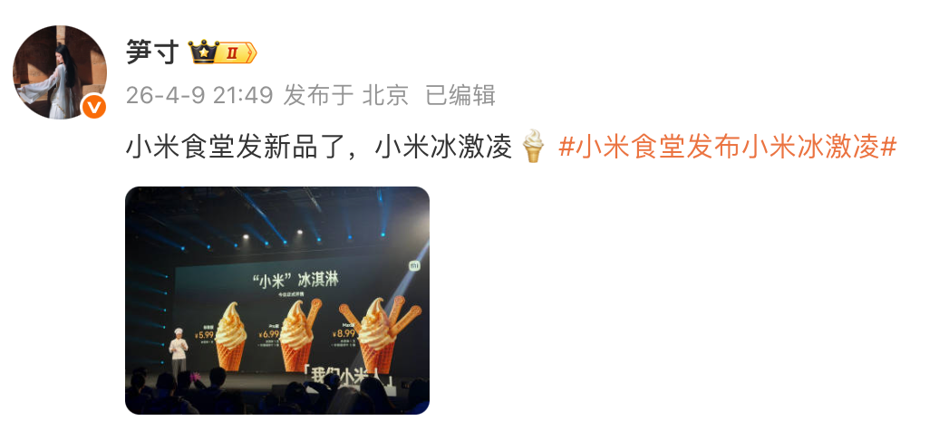 小米集团旗下REDMI产品经理@笋寸 在微博上提到了小米冰淇凌,相关话题引发网友热议。