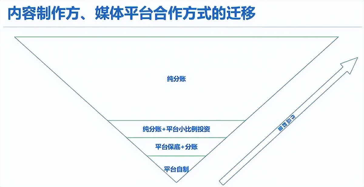 与此同时,平台和制作方的合作方式将逐渐向分账模式迁移,分账模式将成为主导。纯分账的内容数量占比会越来越高,其次是纯分账+平台小比例投资(比如投资算力、IP),再其次是数量较少的平台保底+分账模式,最后是平台自制内容。