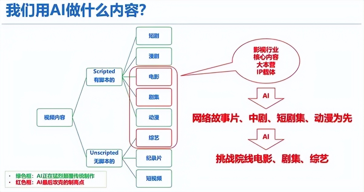 · 单位内容成本降低一个数量级。无论是1分钟、1集还是1部,成本都会降到原来的十分之一、十五分之一、二十分之一、甚至三十分之一。
