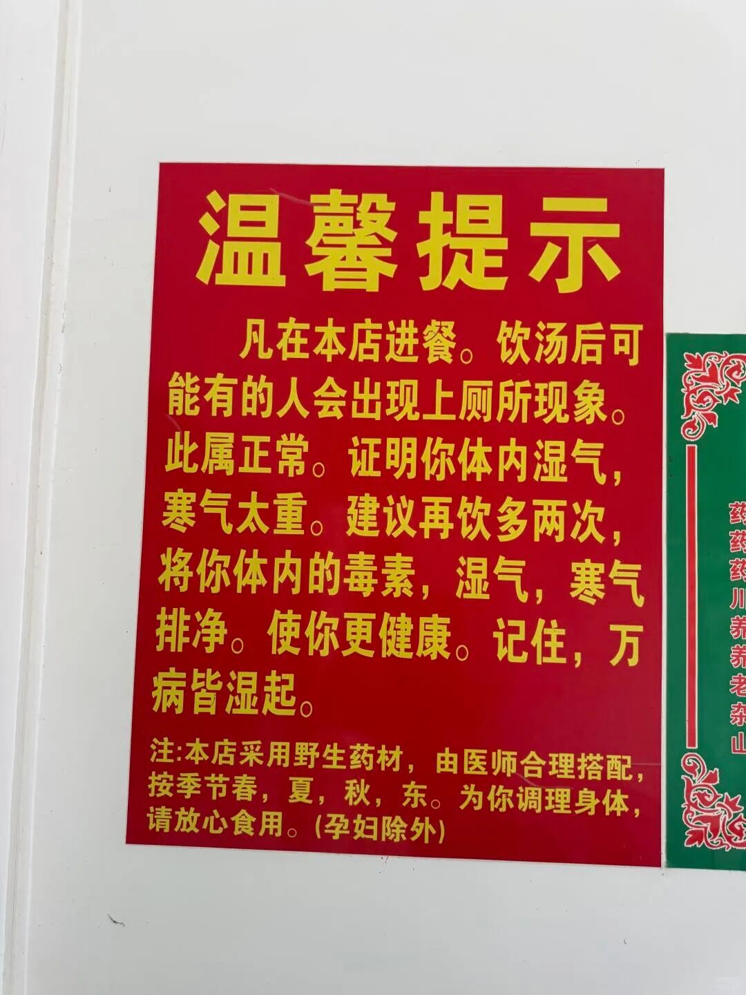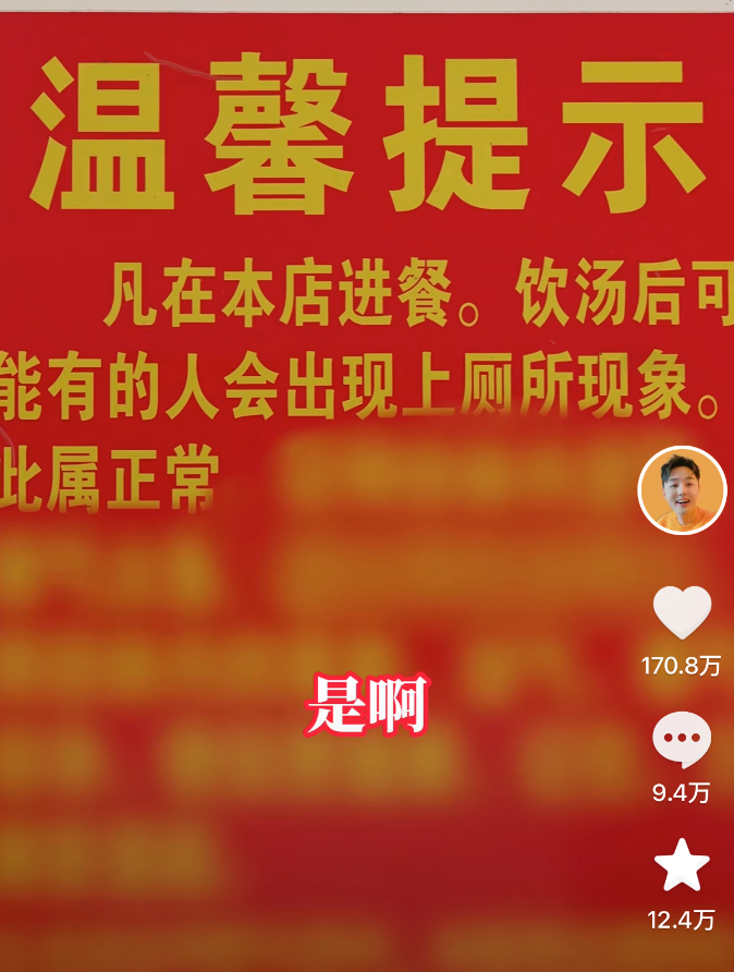 更有意思的是,店里贴着温馨提示“拉肚子与自己无关”。