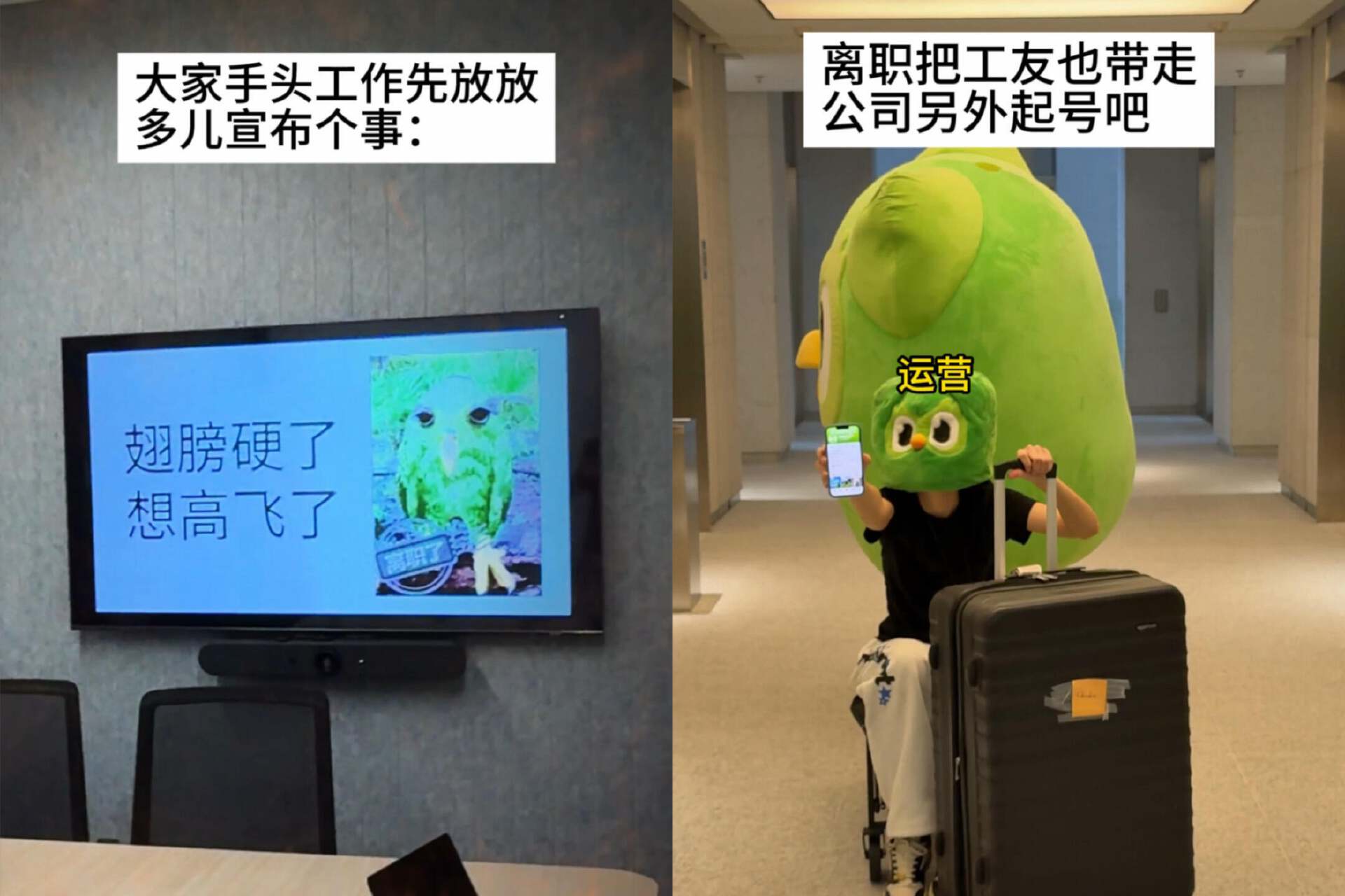 和瑞幸的世纪婚礼好像还近在眼前,戏精绿鸟又忍不住要搞事情了。这位显眼包高调宣布「自己翅膀硬了」,在忙碌的求职季,潇洒闯进了「裸辞赛道」。多儿前脚刚离职,立马就收到了上百个品牌的电子offer,正当大家纷纷猜测绿鸟会花落谁家,美团外卖官宣多儿正式入职。原来这俩早已暗中联手,盘算着靠「劝学+劝吃」的组合攻势,全方位渗透年轻人的生活。