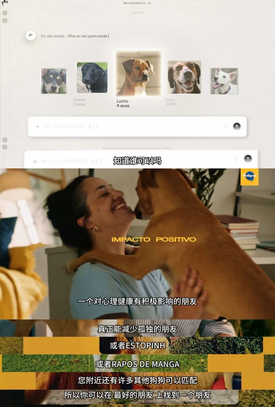 AI 在这里不是喧宾夺主的主角,也并非要去替代真实的陪伴感,在这里,AI 反而像是一个隐形的媒人。技术向左,生命向右,宝路能看到的是当下人们对陪伴的渴望,是流浪狗狗的困境,所以用 AI 作为桥梁,连接起人与狗狗,无论爱开始是怎样发生,我们最后都会在爱里重逢。