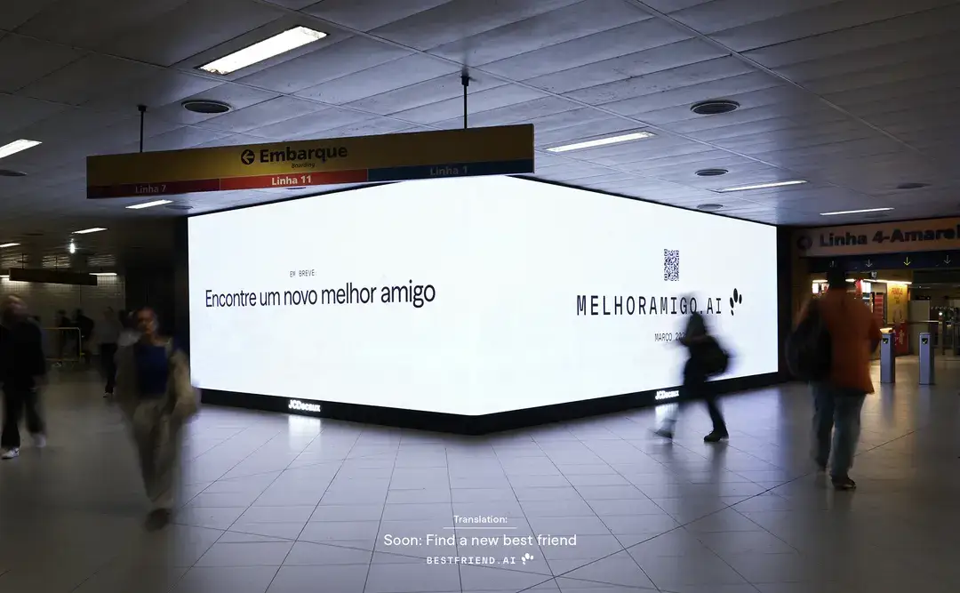 活动一开始,宝路在圣保罗街头投放了一系列极简的黑白广告牌,只有一句非常极客风的文案:一款可以帮助你找到朋友的人工智能—— Melhor Amigo AI(最好的朋友 AI)。