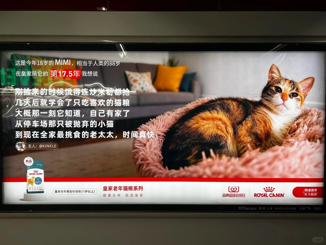 如果你最近路过上海地铁站,大概率会在那些大幅的文案海报前慢下脚步。没有昂贵的视觉特效,也没有代言人的大幅特写,皇家宠物粮这次把昂贵的广告位,全部留给了普通人和他们毛孩子之间的碎碎念。
