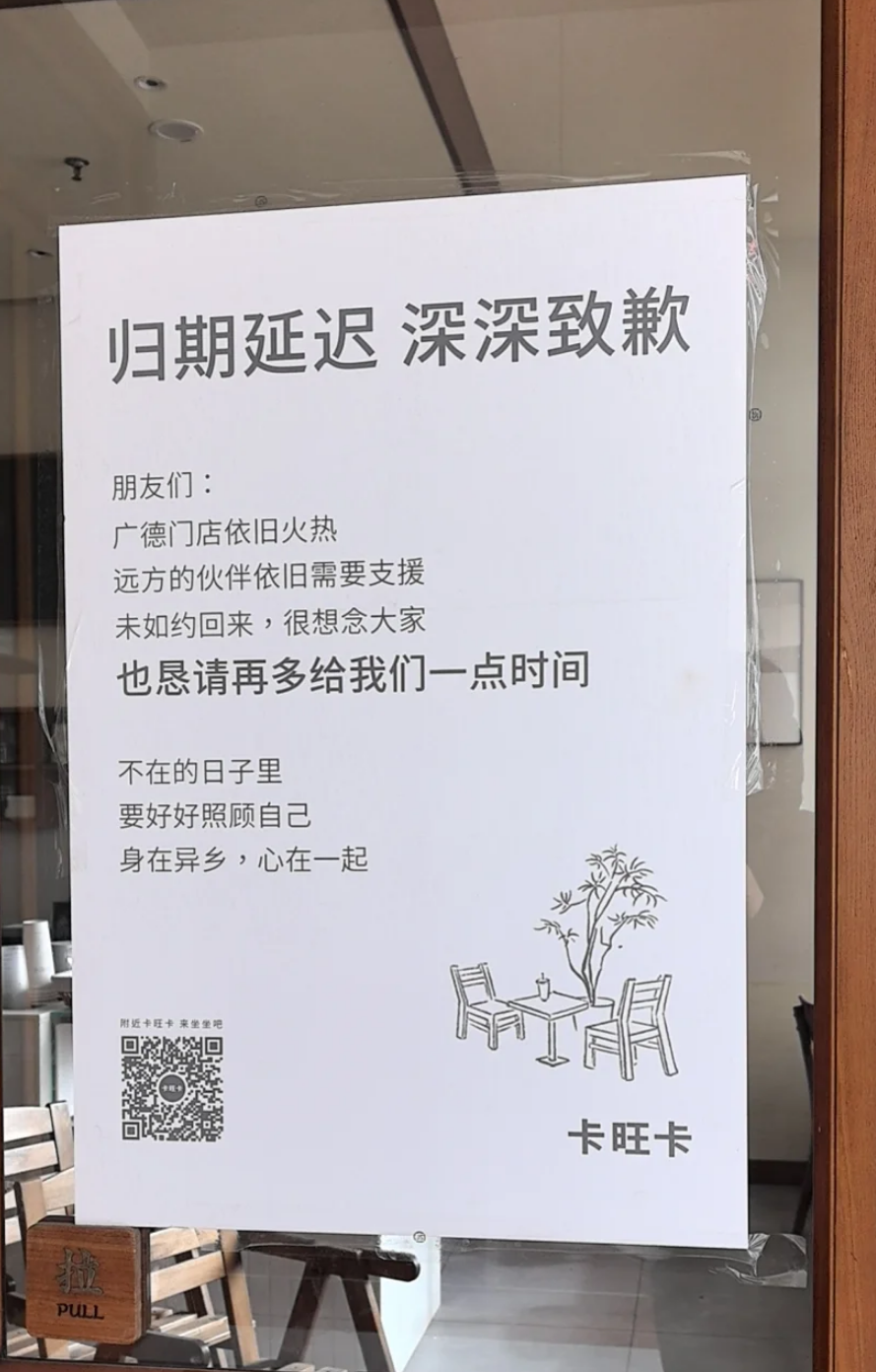 在12月20日挑战完世界纪录之后,前去支援的卡旺卡门店也并没有在第二天恢复营业,而是在门口贴上了一则通知,抱歉地告知当地顾客,因为广德的生意太火热,他们不得不延长在广德支援的时间。
