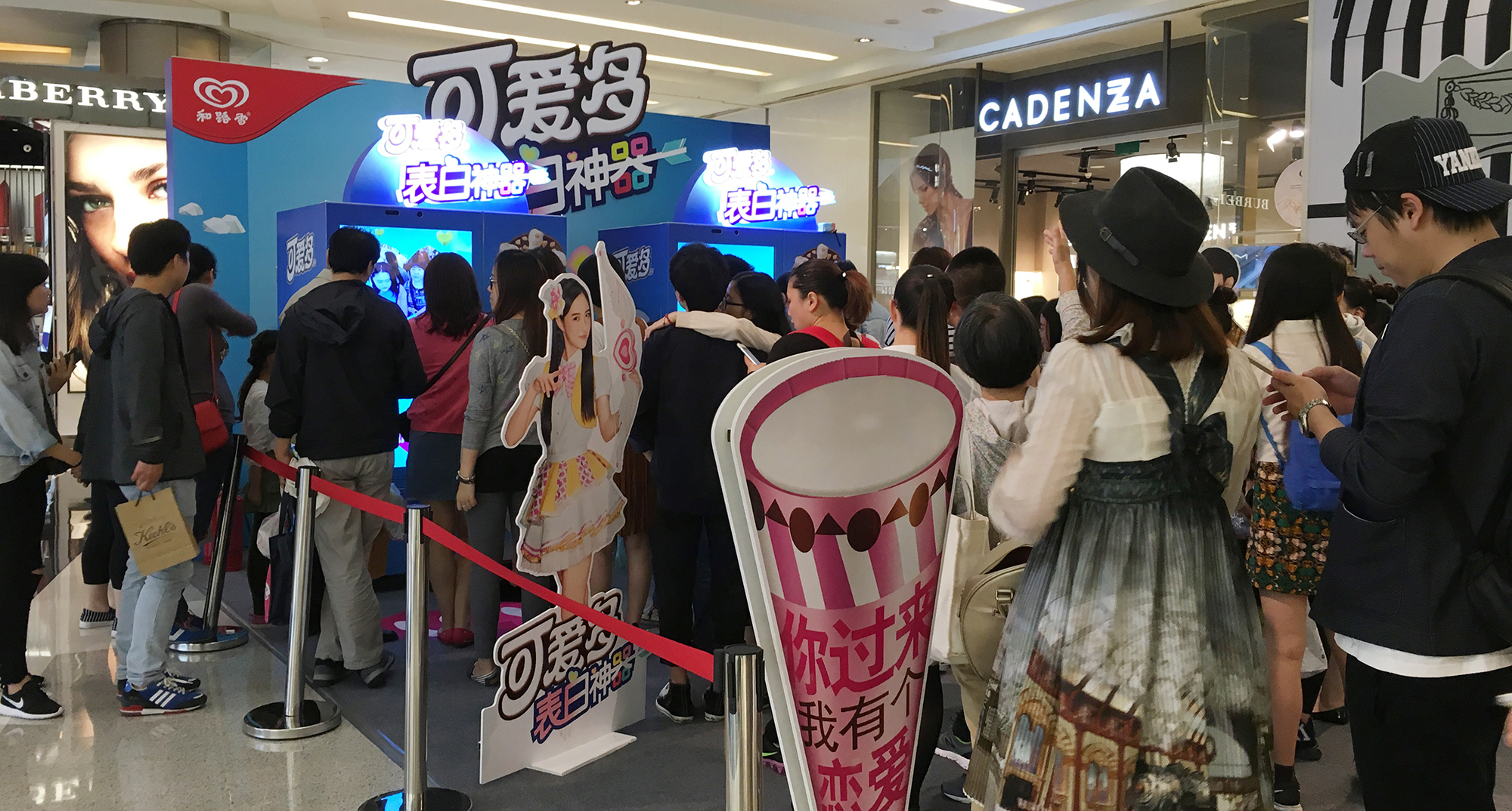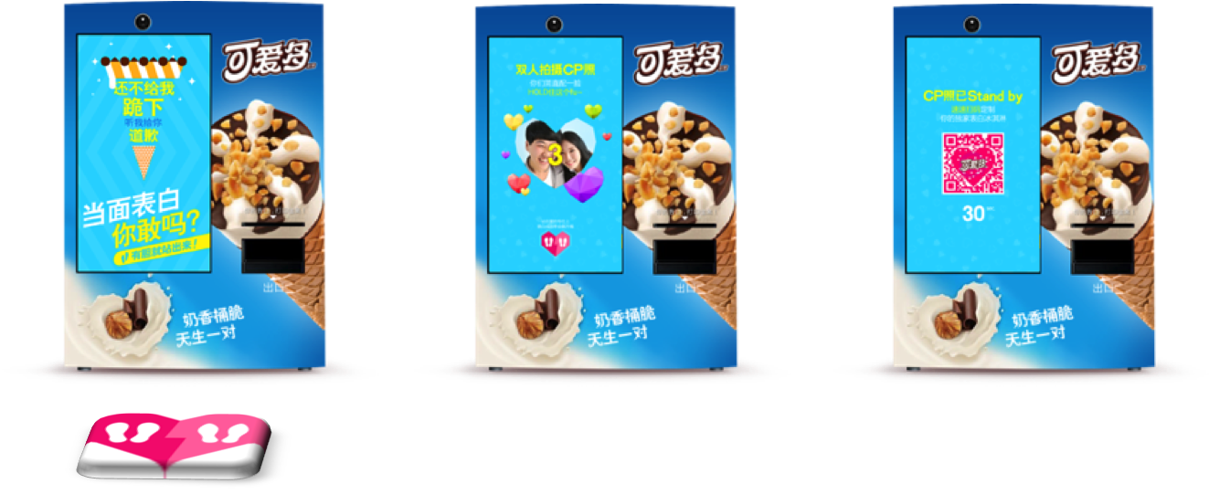 RobotOne打造独有专利的可爱多智能贩卖机,展放在各大城市的商场百货,为线下营销带来了不同的互动方式。