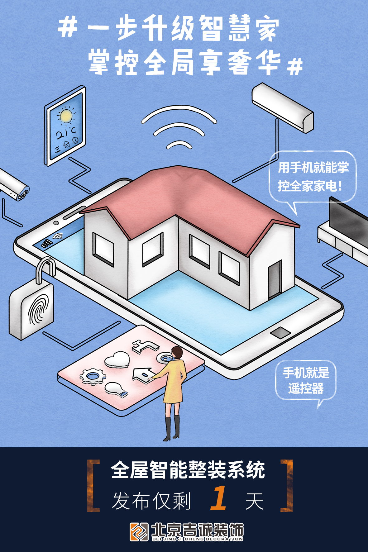 海报主要目的;1、让消费者清楚全屋智能整装有哪些内容;2、将只能系统融入生活情境更易接受;3、家装的升级版智能整装升级告知发布时间。