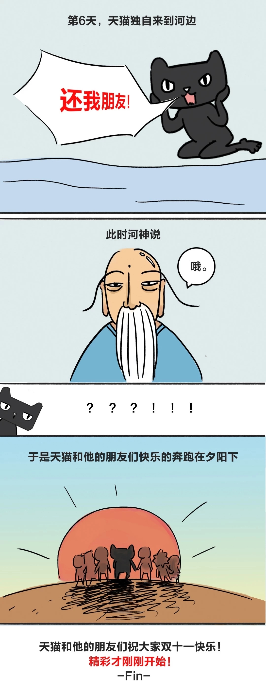 天猫IP漫画:当天猫的朋友们掉到了河里……