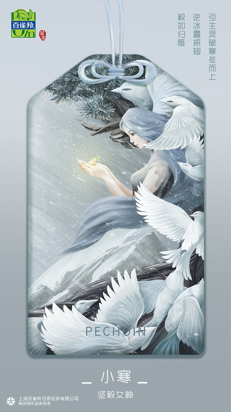 百雀羚全年节气海报,玩出海报新高度。这一系列的海报可谓是玩出了海报的新高度,也将百雀羚的品牌个性展现地淋漓尽致;同时还给每一个节气赋予了最独特的“节气女神”的称号!