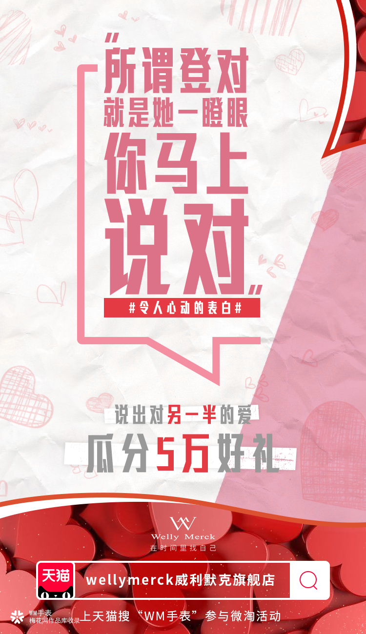 wellymerck(简称WM手表)感恩节联合众多蓝V共同发起《令人心动的表白》活动,意在引导用户大胆所爱,让表白不再羞于说出口。