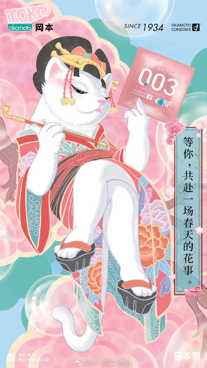 冈本为新款产品0.03系列「贴身超滑」发布一组插画,名为《春的七重梦》,配以日式春日俳句,为这个春天带来几分情欲的诗意