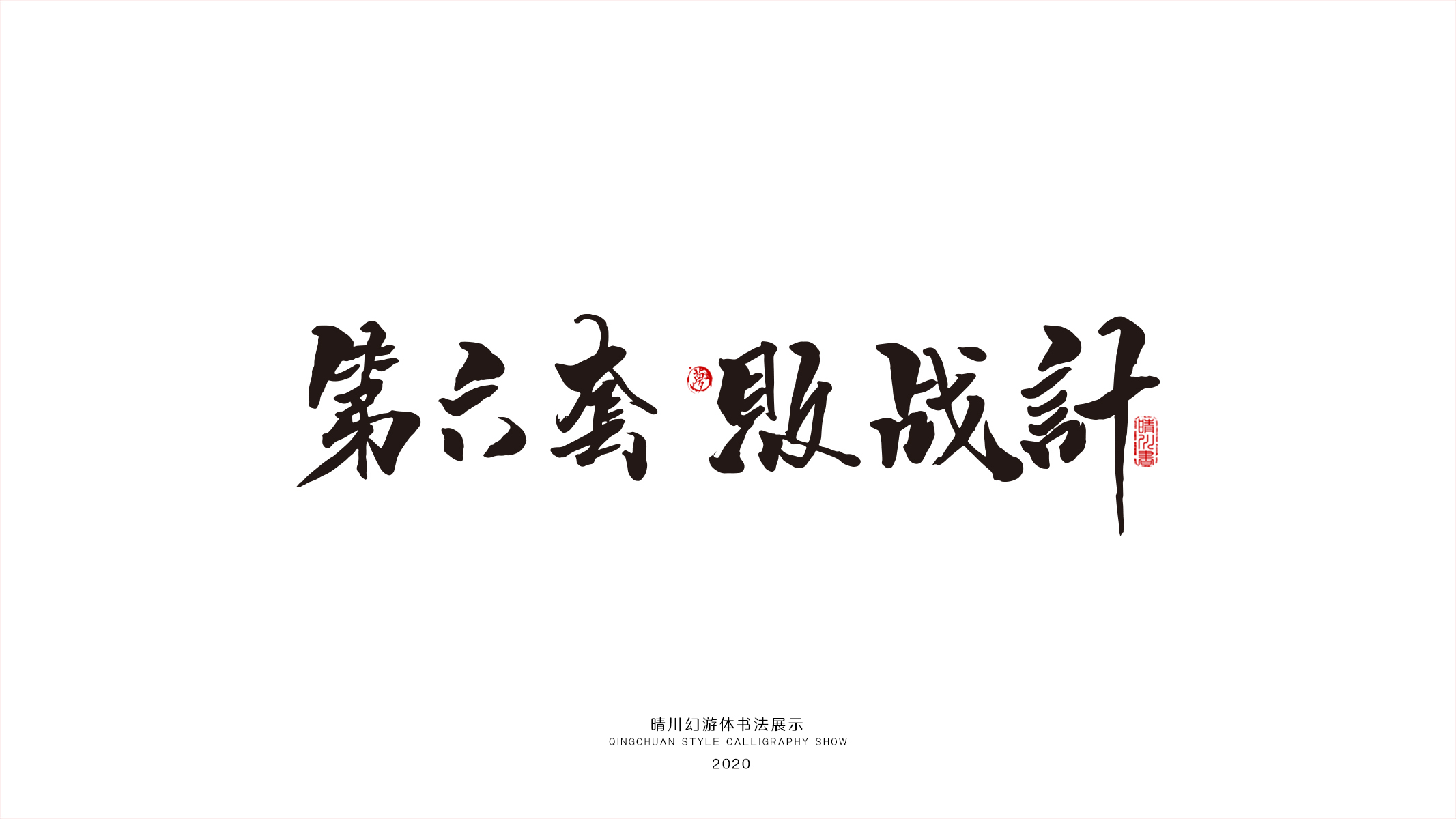 晴川幻游体书写的三十六计 — 《三十六计》或称三十六策/是指中国古代三十六个兵法策略/语源于南北朝/成书于明清/ 六六三十六/数中有术/术中有数/阴阳燮理/机在其中/机不可设/设则不中/ — 原书按计名排列共分六套/即胜战计/敌战计/攻战计/混战计/并战计/败战计/ 前三套是处于优势所用之计/后三套是处于劣势所用之计/每套各包含六计/总共三十六计/ — 三十六计是中国古代兵家计谋的总结和军事谋略学的宝贵遗产/为便于人们熟记这三十六条妙计/有位学者在三十六计中每取一字/依序组成一首诗/金玉檀公策/借以擒劫贼/鱼蛇海间笑/羊虎桃桑隔/树暗走痴故/釜空苦远客/屋梁有美尸/击魏连伐虢/