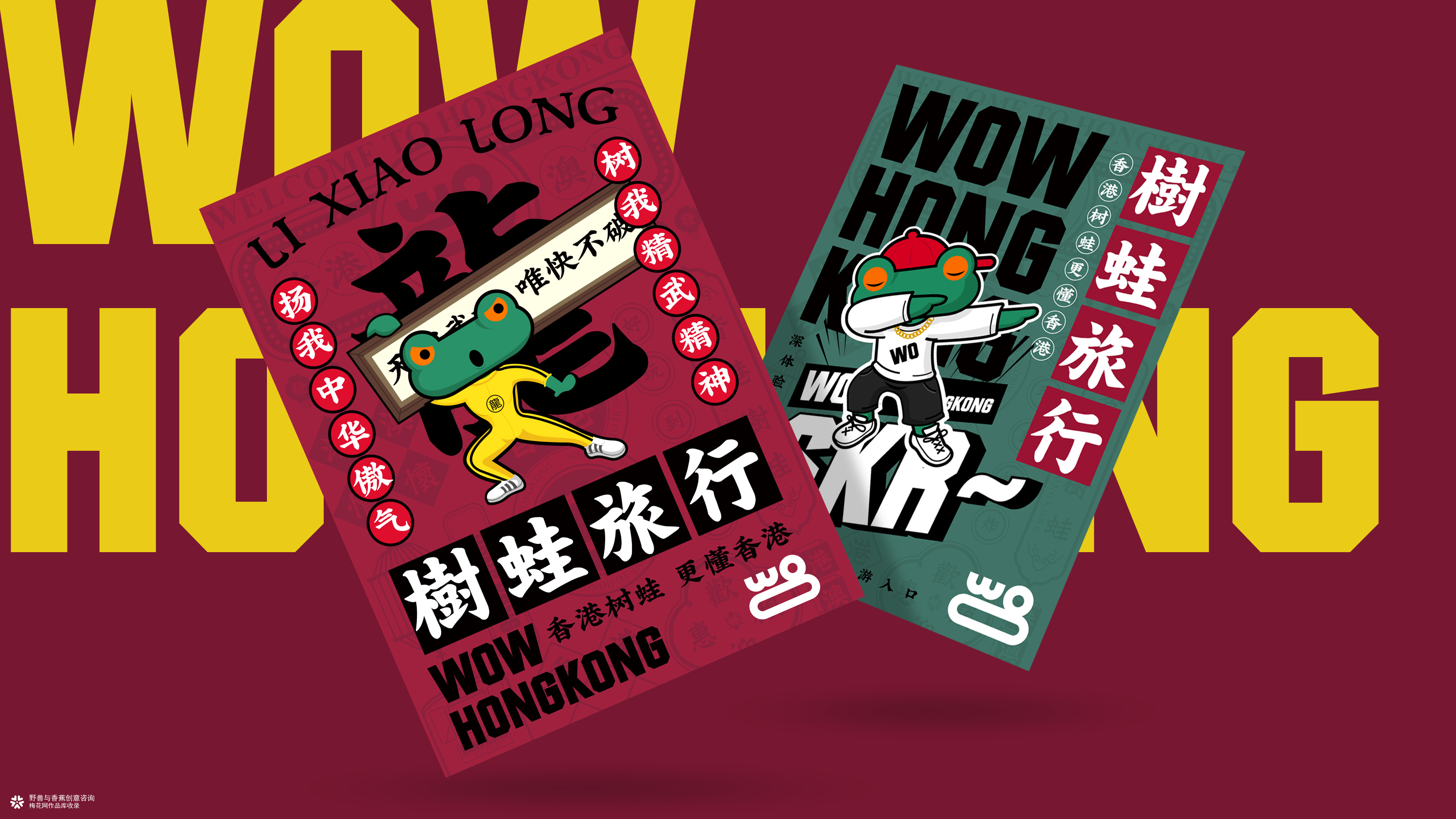项目简介: 新景界旗下的“深圳旅游集散中心”作为港澳游服务机构,在占中事件之后,业务急转直入,并一度陷入亏损,团队士气跌入谷底。集散中心新掌门人上任,希望通过新的品牌导入,重新激活士气、创造力与业务,带领公司重返事业巅峰。 1)超越认知的品牌体系 在资源上,撸起袖子做“超能挖”; 在产品上,通过产品创新让游客“哇”; 在服务上,保证质量“顶呱呱”。 2)logo必须超简洁、识别度极高,打造品牌超级符号、超级语言:“哇(蛙)” 3)IP建立品牌魅力人格体。一个品牌,如果把他当成一个人,TA是什么性格?多大?有什么故事?一个“有材有料又有爱”树蛙仔形象“港味”浓,沟通易,品牌一经上线便称霸港澳游市场。