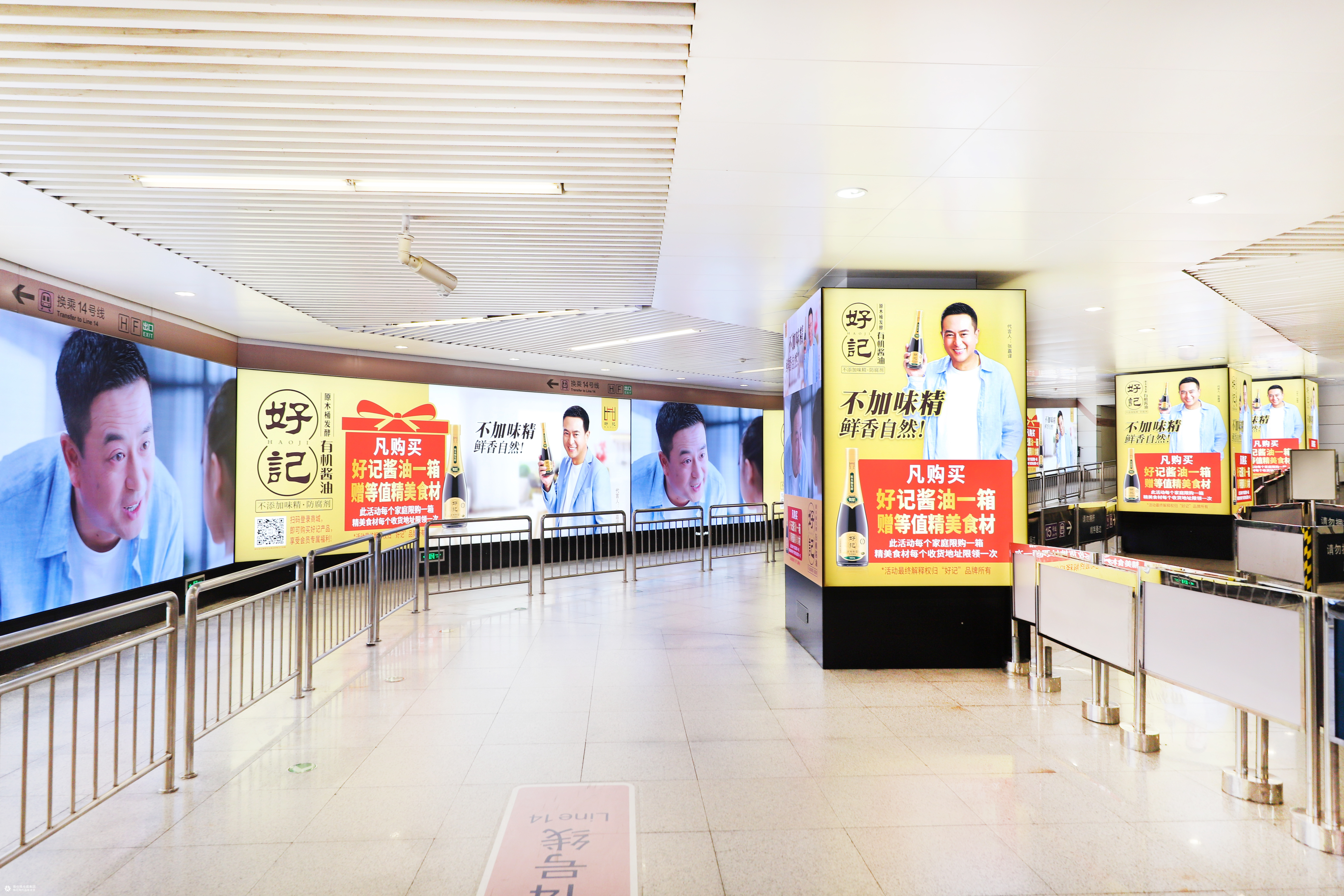 北京地铁望京站【璀璨光域】全新超级媒体超强发布好记酱油,25㎡异形超大灯箱配合4根无边框直角屏+无边框灯箱立体包柱,动静画面无缝衔接,媒体更具穿透力,视觉、音效、光效技术联动,超强视觉画面,展示空间面积可达180㎡,使广告在强弱光的切换中,都能持续炫彩夺目,精致打造好记品牌立体沉浸式空间。 望京站是14号线和1号线的换乘站位于北京朝阳区经济商业战略要地周边多家购物中心及新兴互联网企业覆盖优质消费群体。 好记酱油原木桶酿造工艺,有机种植大豆和小麦,全程符合有机生产加工管理体系的要求,选用白松原料、窖藏容器,适宜温度、立体发酵,无需添加即可酿出多种风味的酱油,每一步都保证健康,真正做到“味道与健康并重”。