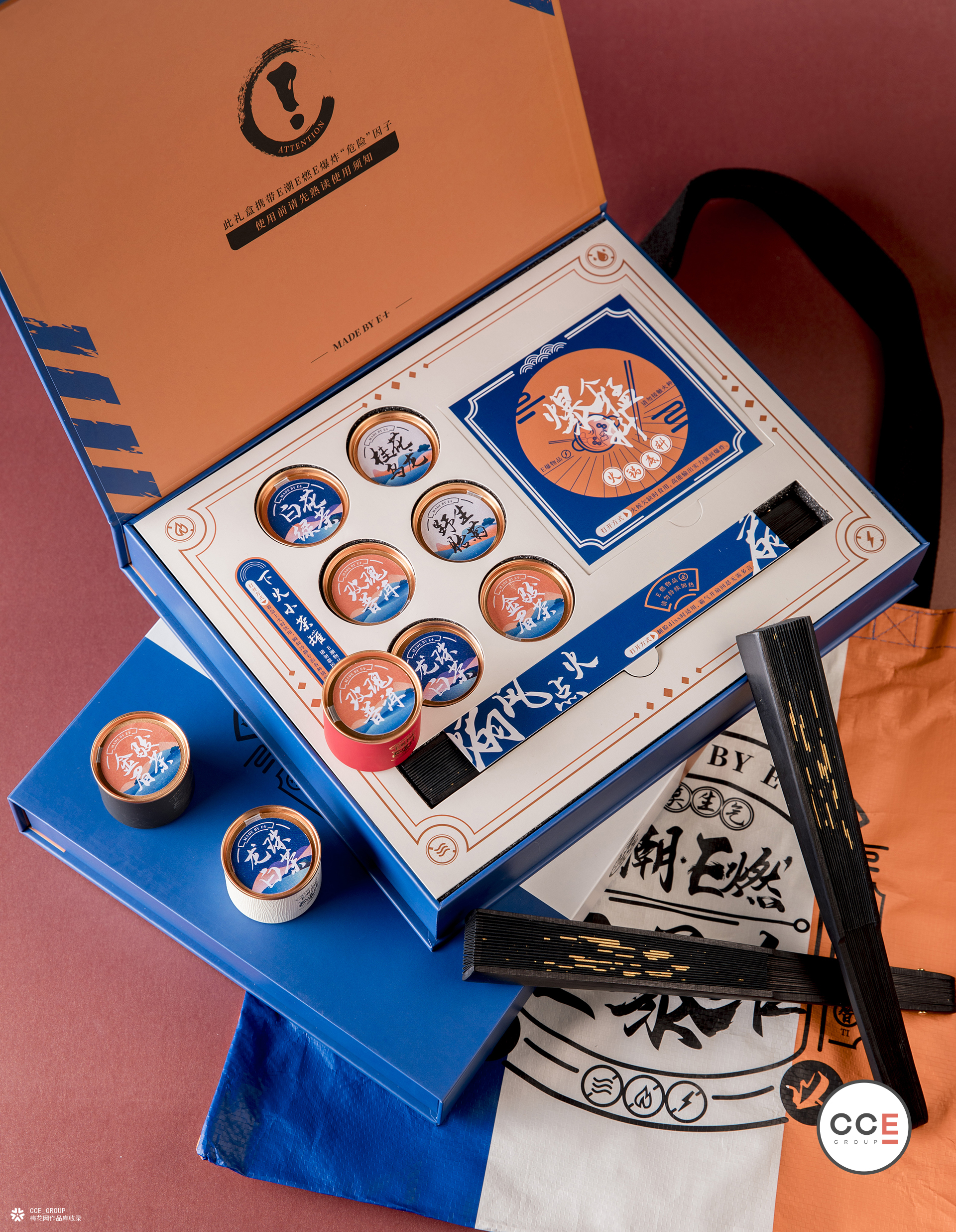 CCE Group旗下专注于创意产品开发与“智”造的高颜值原创机构「E+智造局」推出中秋礼盒「创意因子反应盒」汇聚E潮E燃E爆炸三大因子。 E潮·因子出处 我们既非前浪也非后浪 从不追赶浪潮 而是要去掀起浪潮 E燃·因子出处 一句文案 一幅视觉 一帧画面 一步执行 输出无论巨细 都要全程燃炸 E爆·因子出处 每一位CCEr都是一簇星火 星火团簇势必燎原 出品皆爆品 上场即炸场