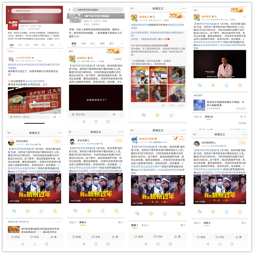 年关至、归心切,春节回乡团聚是中国人的传统。2020年末,国内多地出现散发病例,疫情动态再度牵动人心。2021年1月,杭州巴士传媒联合中国新闻社浙江分社、新浪浙江、FM104.5旅游之声迅速汇聚多方力量,发出“我在杭州过年”2021春节抗疫微倡议。 深度融合KOL+KOC,针对主题进行多维度释义;跨界联合倡议+线下场景化,借势城市地标媒体扩大声量;“真实”的情感更是与受众最优的沟通内容。 短视频《年话》作为情感引擎,传递着“只要家在,年一直都在”的理念,尽管今年因为种种原因无法回家过年,但是“相距,是为了更好的相聚”。只要亲友平安、家庭和睦,年味所属的团圆美满终究没有缺席,大家可以把以后的每一个日子都过出除夕夜的滋味。