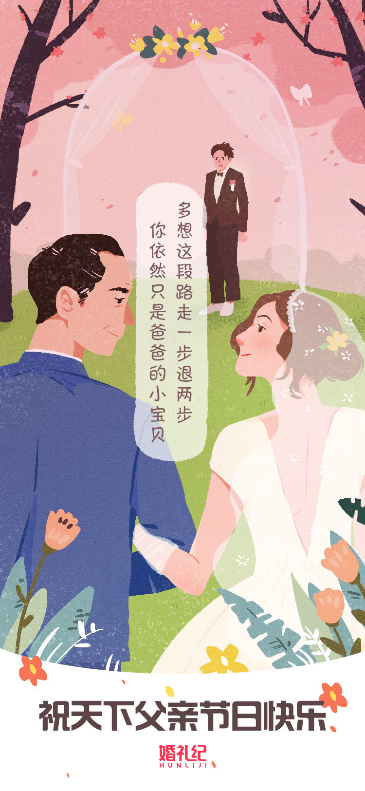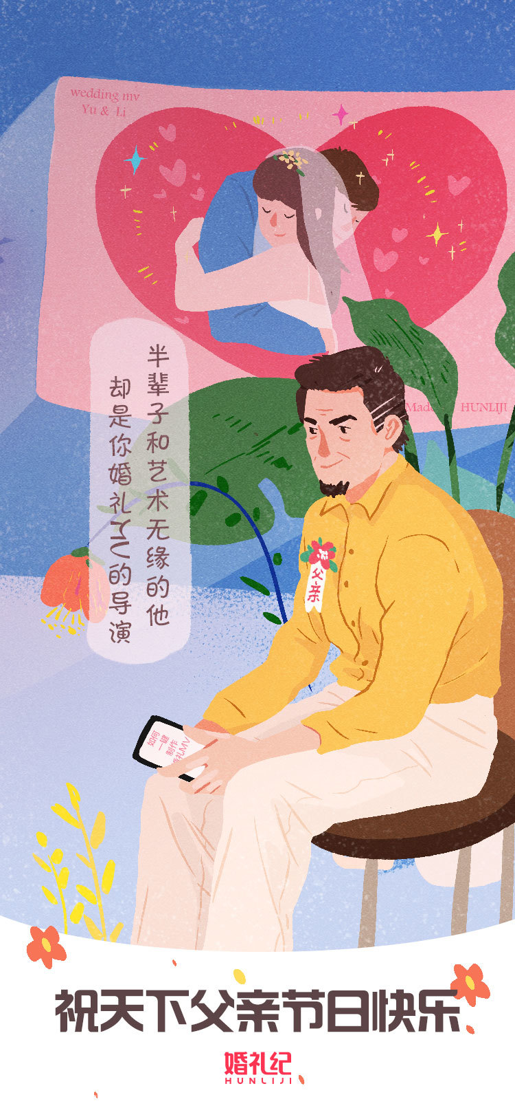 婚礼纪2021年父亲节推出插画海报,产生的催泪效果和传播力惊人,在特定的传播环境下引发网友好评。
