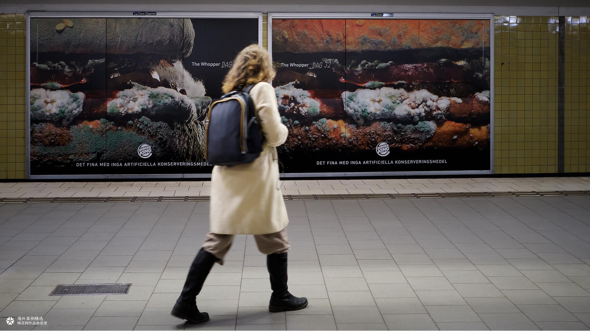 2021戛纳国际创意节户外狮全场大奖(Outdoor Lions Grand Prix)《The Whopper DAY 35,DAY32,DAY28 》 2022 The One Show:Creative Effectiveness / 银铅笔 品牌:汉堡王;代理商:PUBLICIS ROMANIA 一组令人有些不适的户外广告,真实还原汉堡逐渐腐烂的过程。汉堡王在创意传播上一向风格大胆,此次的劝退操作是为了向用户展示其产品原材料天然,不含人造反腐剂。食物真正的美妙之处,正在于它最接近天然的丑陋。