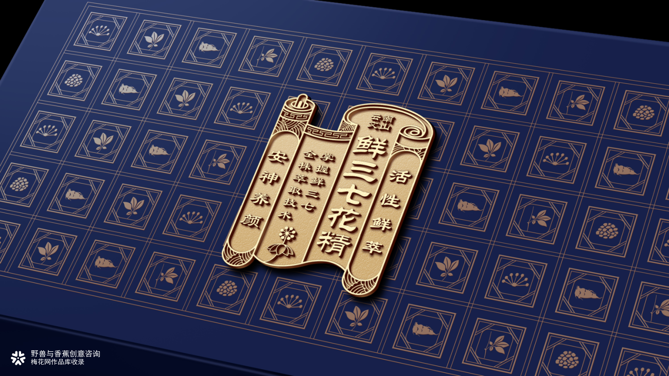 项目背景: 云南金七集团是文山当地的三七产品生产商。现集团有意拓展产品线直面C端市场,这次与蕉兽的合作,旨在现有产品和新产品的包装上做设计优化。 解题思路: 不随大流,深究品牌基因优势,提升产品价值感 在分析了市场后,我们根据金七的品牌基因,提出以下解决方案: ①产品换包装=换概念,金七要做的是时尚的养生品牌 ②提炼产品核心优势:文山好三七,鲜萃核心技术 ③以货架思维做出品牌差异,将产品信息和购买理由清晰传递 ④视觉优化,针对先有产品和新产品做不同产品设计,做到平衡特色与美感 通过对产品应用场景、目标人群及产品卖点分析,蕉兽为金七打造了从概念创意到包装设计的一整套产品方案,为品牌差异化奠定了基础。