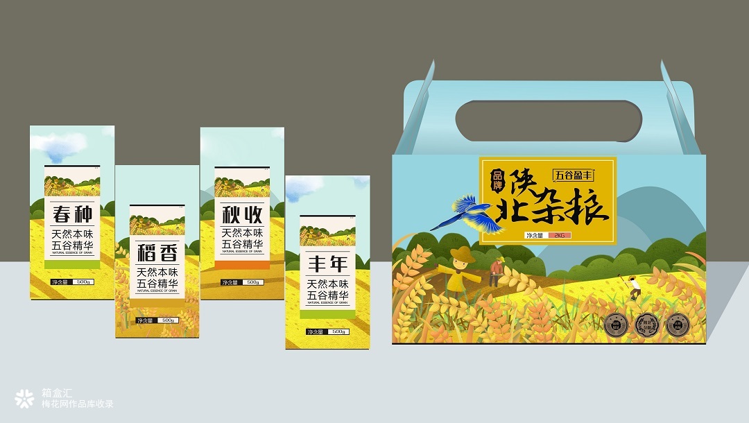 一块良田便是块宝藏,陕北杂粮被越来越多的消费者认可,并且逐步走向市场,方案围绕耕地、喜鹊(丰收)、金灿的稻谷为素材,用环境描绘产品的丰富性和多样性,每个内盒“稻香”“丰年”“春种”“秋收”各代表一个主题。 箱盒汇——让好产品找对好包装,致力于提供一站式包装整体解决方案。已服务西安冰峰集团、陕果集团、华圣果业、延安农投集团、逛集网、石羊集团、小六汤包、商洛君威集团、富平柿饼、鹏翔茶叶、泾阳茯茶、渭南酵素城、淳化合山菇、铜川大樱桃、洛川苹果等。 注:本文所示作品均为箱盒汇原创设计,禁止商用!