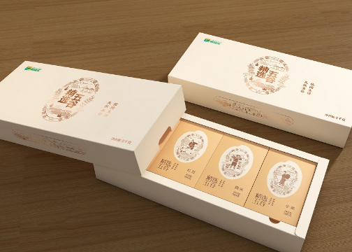 运用线条绘画手法,以简约、现代的方式融合山脉和五谷元素,画面灵动富有活力,以银卡搭配烫金工艺使得包装更显精致、高级感。 箱盒汇——让好产品找对好包装,致力于提供一站式包装整体解决方案。已服务西安冰峰集团、陕果集团、华圣果业、延安农投集团、逛集网、石羊集团、小六汤包、商洛君威集团、富平柿饼、鹏翔茶叶、泾阳茯茶、渭南酵素城、淳化合山菇、铜川大樱桃、洛川苹果等。 注:本文所示作品均为箱盒汇原创设计,禁止商用!