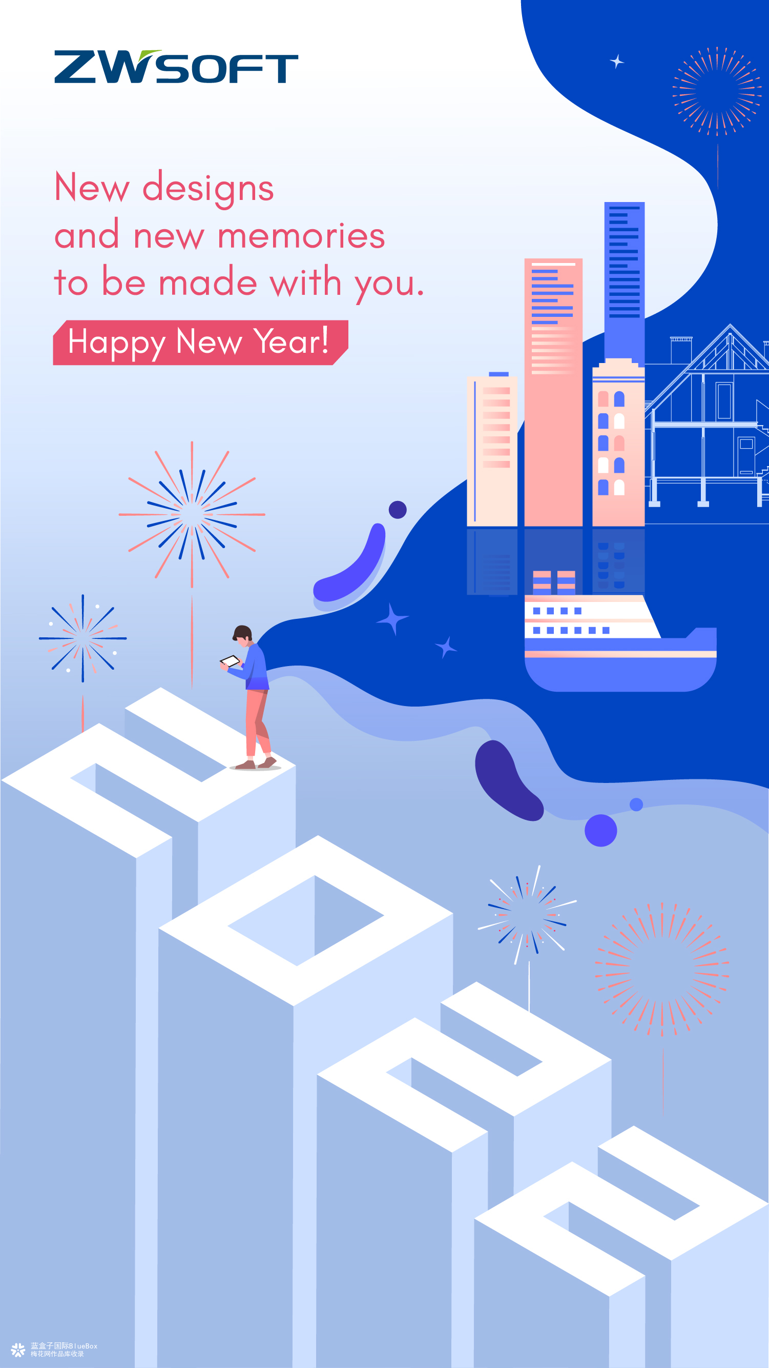 中望软件ZWSOFT 是领先的All-in-One CAx(CAD/CAE/CAM)解决方案提供商 国内A股研发设计类工业软件上市企业 专注于工业设计软件超过20年 蓝盒子国际Blue Box在做设计创作时 注重中望软件的企业品牌理念、产品特征的精准传达 同时注重海报的创意与节日元素之间的结合、平衡