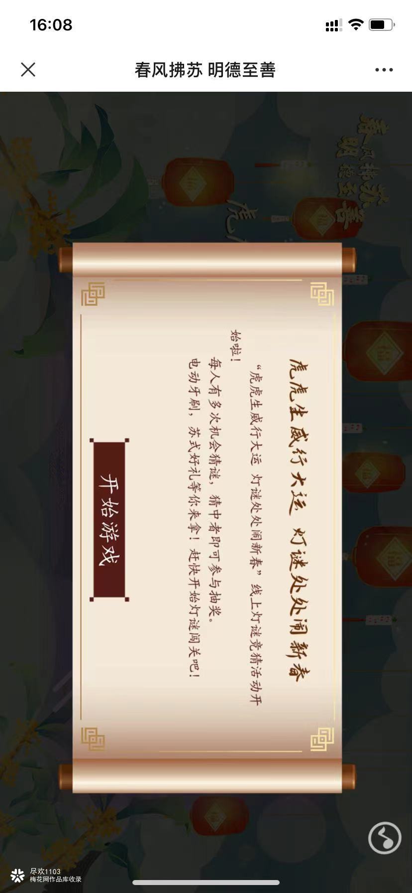用户通过点击开始游戏进入长图界面,向左滑动有古代诗人的简介及诗词,滑到后面会弹出猜灯谜的页面,每个谜面只有一个谜底,不限次数,每次答案正确都可以参加抽奖。