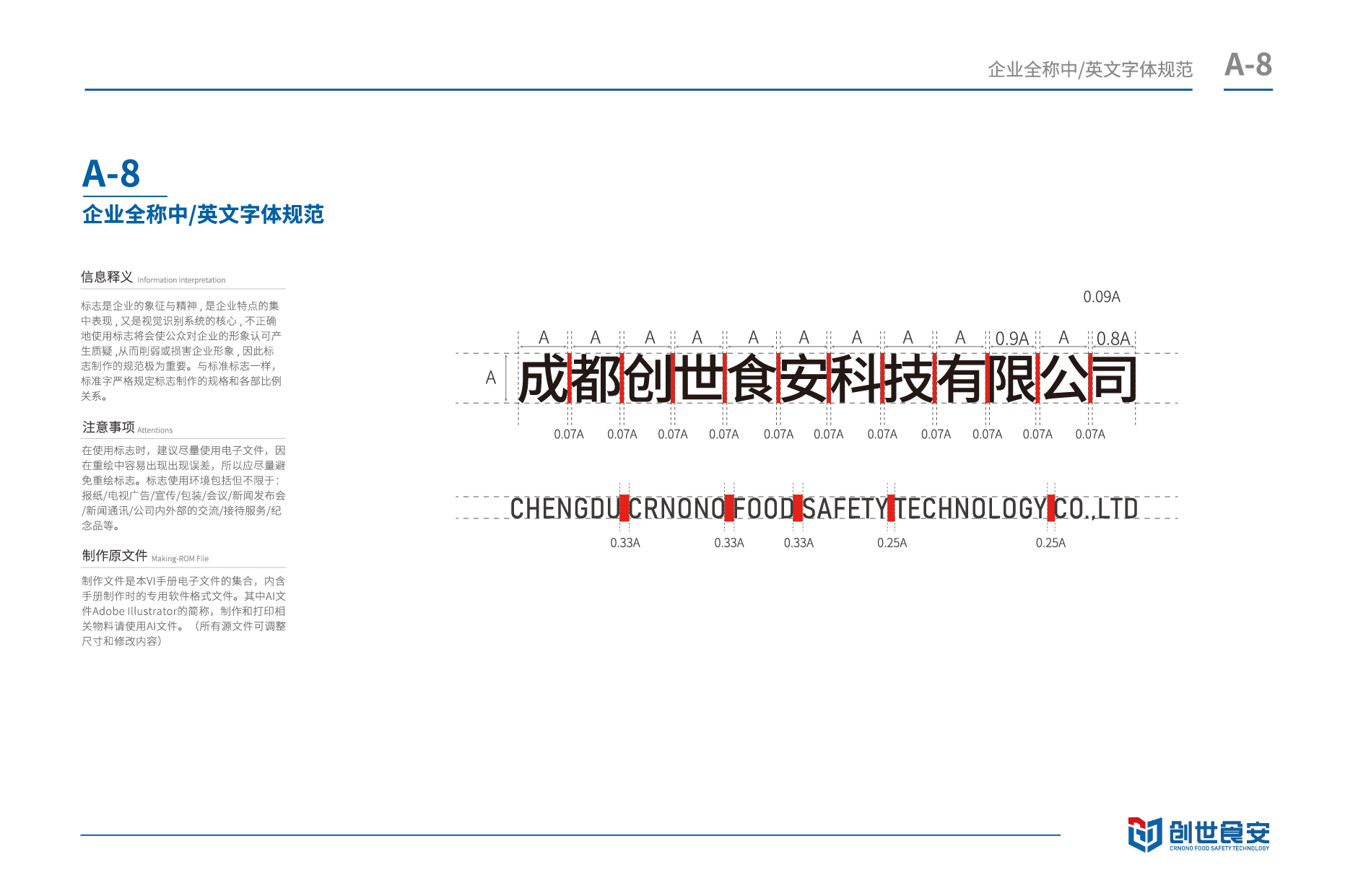 项目名称丨成都创世食安科技有限公司 服务内容丨品牌规划 / 核心梳理 / 品牌logo设计/VI基础系统设计/VI应用系统设计 设计理念: 创世食安企业品牌LOGO设计整体提取“创世食安”“创始织造”“创势纺织”中“创”字进行创意,企业logo整体为“盾牌”造型,寓意企业务实、负责的企业立场,同时象征产品的安全与高质。其次,企业logo两侧的手掌寓意企业“专注、极致、创新