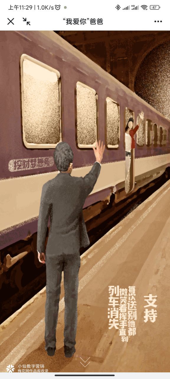 整个H5用小孩子的语气讲述我的爸爸。 用魔术师、超人等形象代表父亲。 使用离别、结婚等情景,让用户感同身受,唤起对父亲的思念。 呼应主题【陪伴】