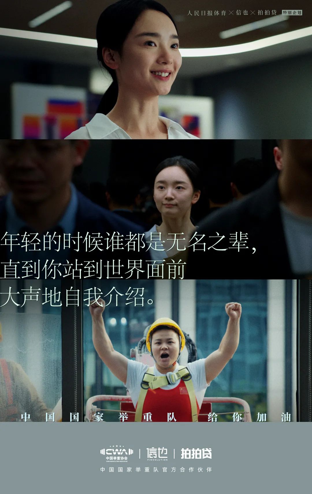 2024巴黎奥运会,来了。 当所有人为奥运健儿加油,信也|拍拍贷却携手人民日报体育做了一个特别的企划:邀请正在巴黎征战的中国国家举重队,反过来,给每个普通人加油 继《举起生活的轻》,我们与信也|拍拍贷再度合作。 如果说,《举起生活的轻》是品牌多年后回归大众营销的一次低调发声,《中国国家举重队给你加油》则是一次更有企图心的品牌表达:希望借助代言人,完成一场有影响力的奥运营销,为品牌赋能与背书,提升口碑与公信力。 我们没有停留于拍一条「竞技精神品宣片」——如你所见,这样的片子已经有太多了,而是希望真正去推动一次品牌行动,完成一件与大众有关的、具有公关价值的事儿。 所以,作为一条事件性质影片,它不需要太华丽的文本,把事儿讲清楚就好了。 奥运时间里,「加油」是一个全民性的公共表达,所有品牌都可以说加油,也一定会说加油。同时社会情绪层面,经济下行,士气低迷,人心也的确需要「加油」。 透过运动员视角,我们更看见一个个努力生活、坚韧向前的中国人的样子。 毫无疑问,这是一条「正能量」片子,但不是宏大叙事的「燃」,而是一种真诚暖心的「燃」;不是抽象的精神,而是具体生动的人。