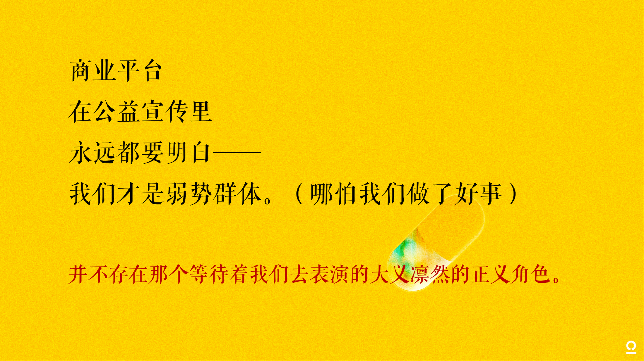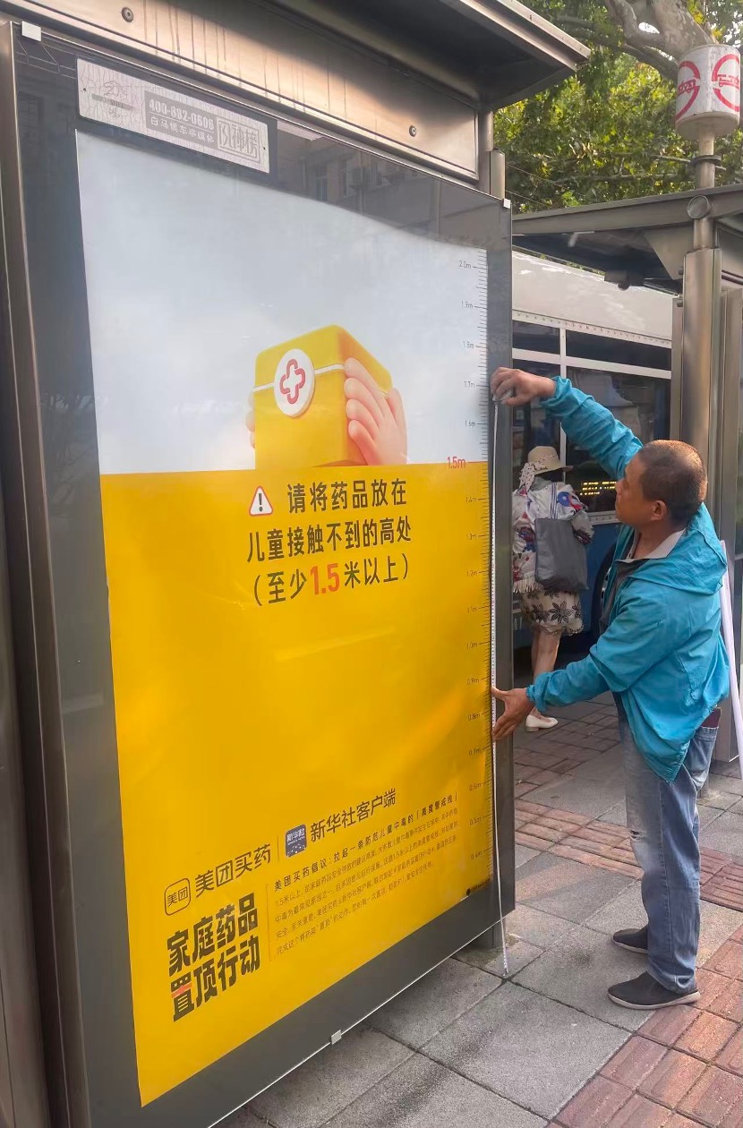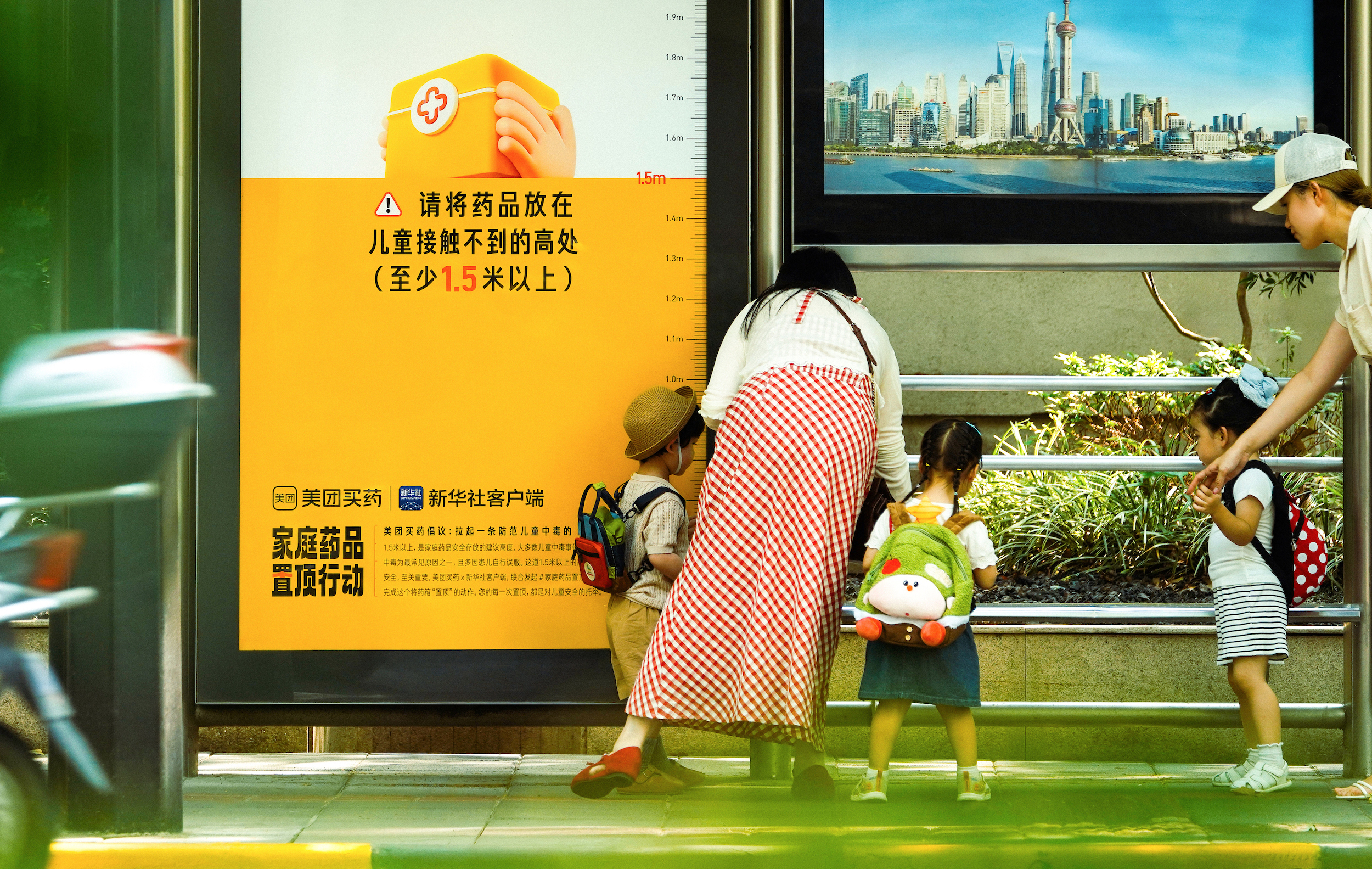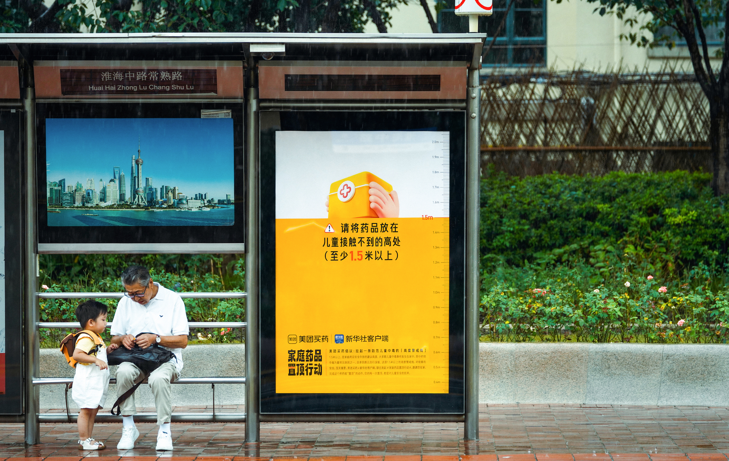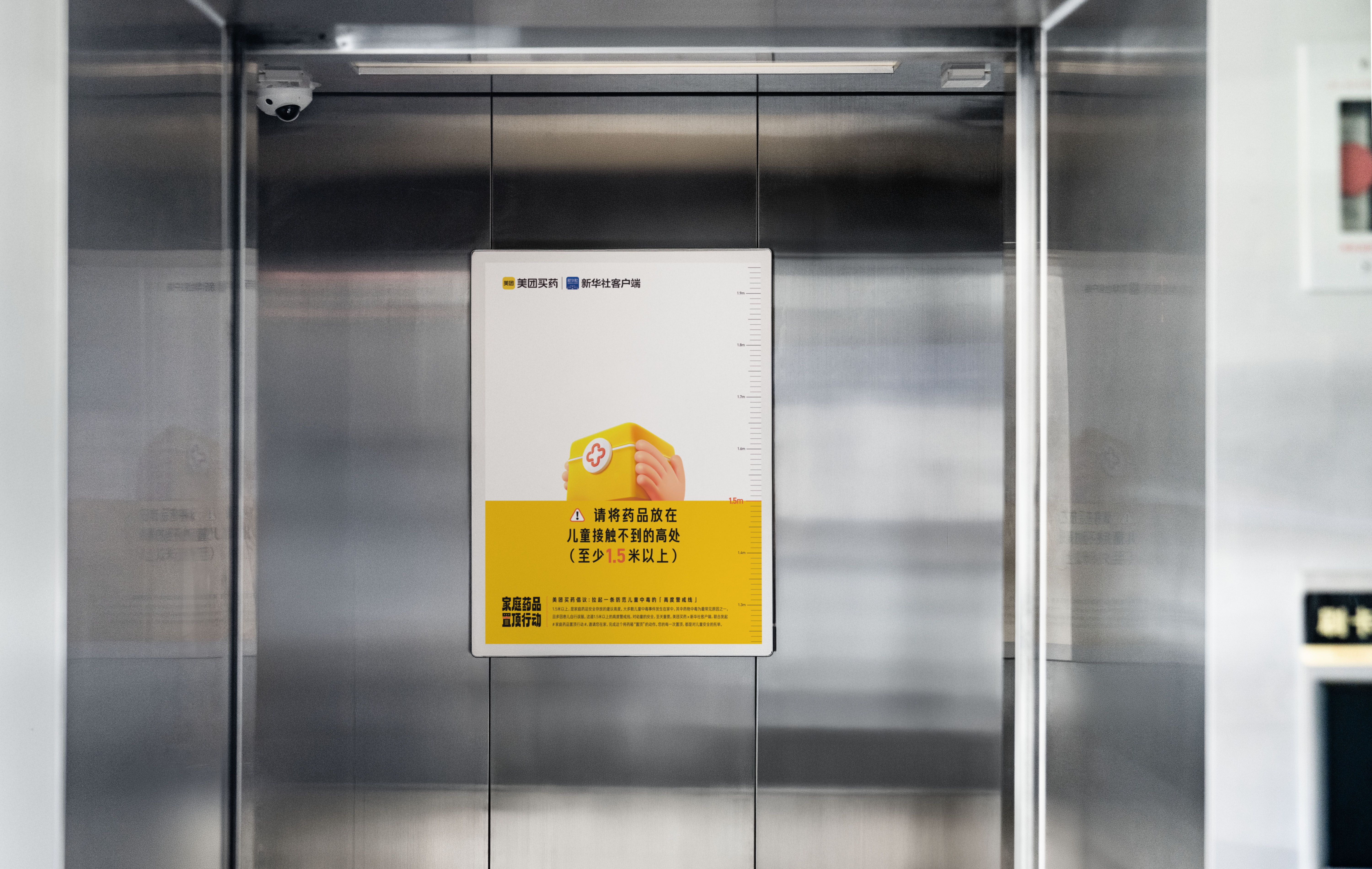这是一个倡议大家为了儿童安全的「置顶」行动,也是一条希望大家能够帮忙置顶的公益广告。 从美团买药的公益brief说起:大多数儿童中毒事件,发生在家中,其中药物中毒多因患儿自行误服。应对儿童误服药,需要更多药品换用儿童安全包装,也需要家⻓建立安全意识,将药品放在离孩子的地方。希望通过一场公益传播,让大家提升关乎儿童安全的药品存放意识,减少此类事件发生。 我们在创意发想的时候,反而将引发儿童在家误服药的客观原因,作为突破口:大多数儿童中毒事件,发生在家中,那些停留在桌面、床头柜等低矮处的药品,很容易导致患儿自行误服。以上海为例,2012~2016 年,平均每两天就有一个孩子因误服药中毒进急诊。 运用品牌小药箱资产,我们发起了一个公益倡议,希望大家将停留在低矮处的药品收进药箱,并且「置顶」到儿童接触不到的高处。 这个公益icon的设计,带点仰视的视角,做出动作示范和置顶感的同时,希望您置顶药箱的动作,就像双手托举起家里的小不点儿一样。 我们查阅了很多关于用药安全的文章,发现儿童安全机构和专家,对于药品存放的建议“必须存放在儿童无法触及的高处”后面,都有一个括号(建议1.5米以上)。我们给所有广告牌,加了把尺子,把1.5米的刻度标红。并且保证每个广告点位,上面的1.5米刻度线距离地面都做到现实层面的1米5。变成可实际测量的一次互动。 感谢这个项目背后辛苦付出,并肩努力的每一位。让我们继续传递善意,也成为善意。