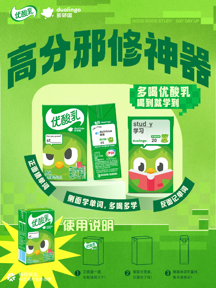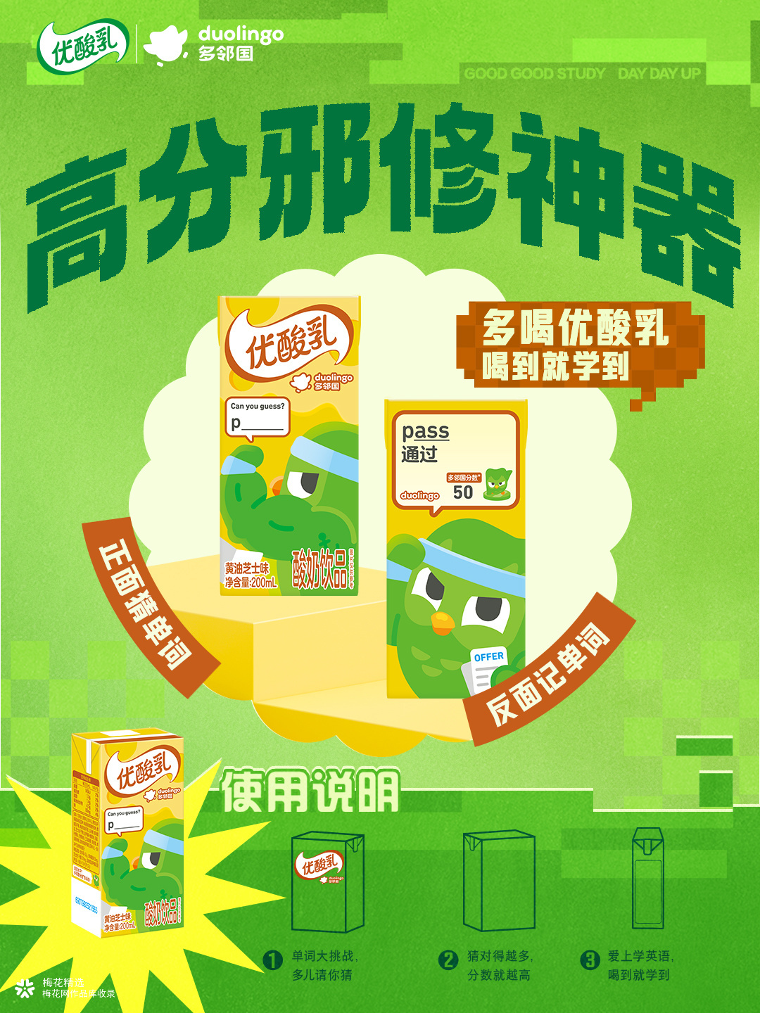 优酸乳联名多邻国带来高分邪修神器,喝到就是学到!