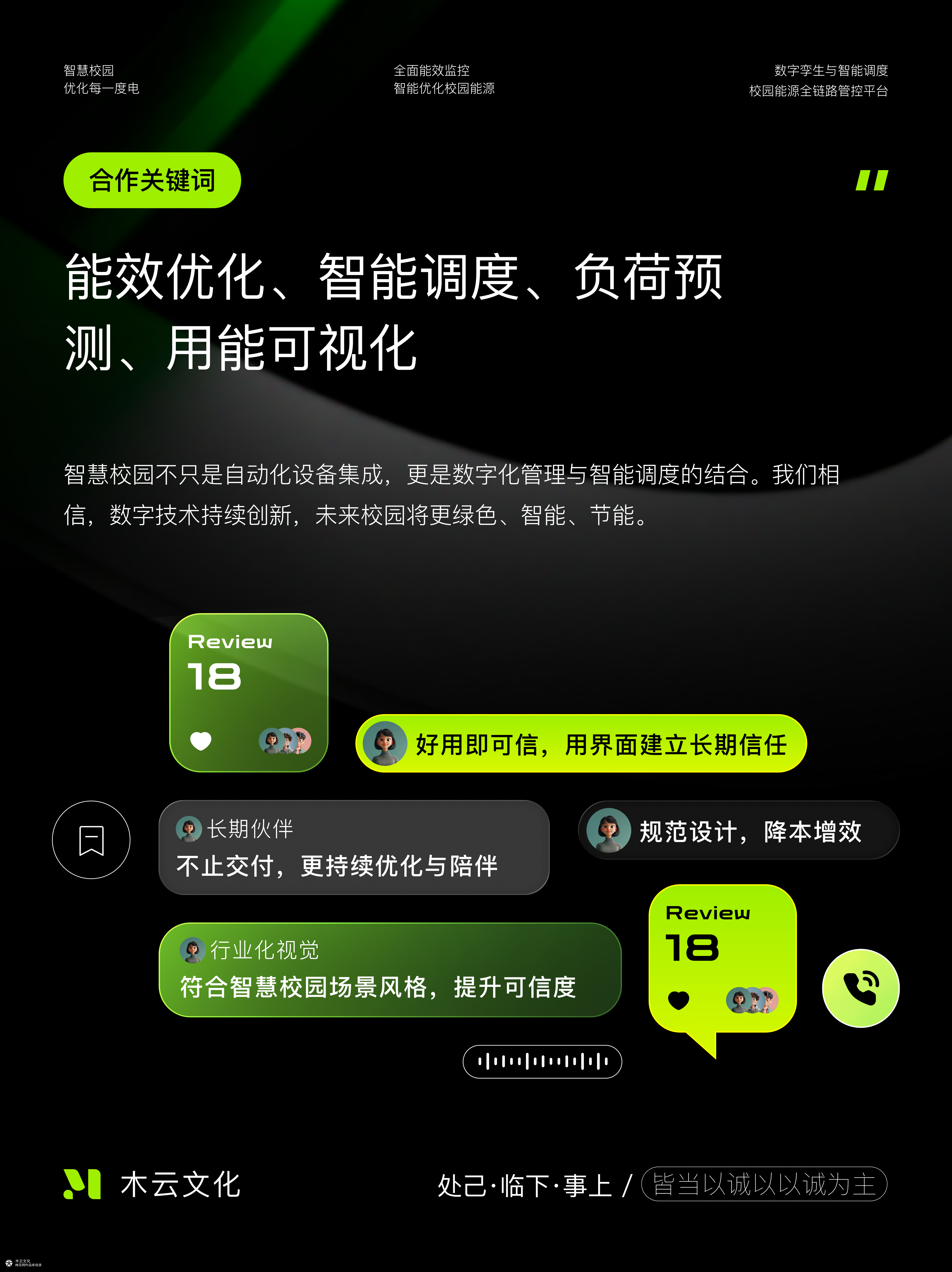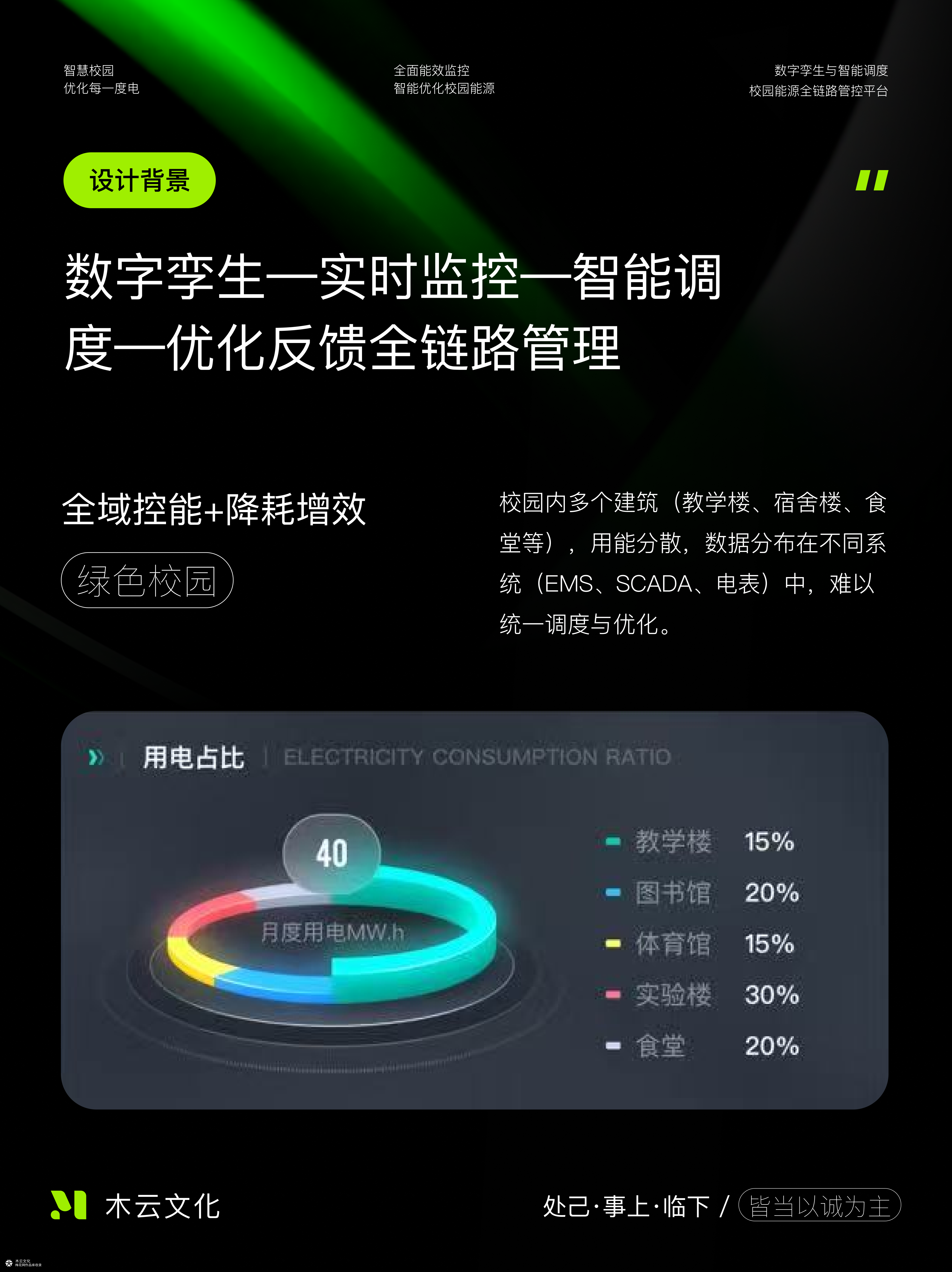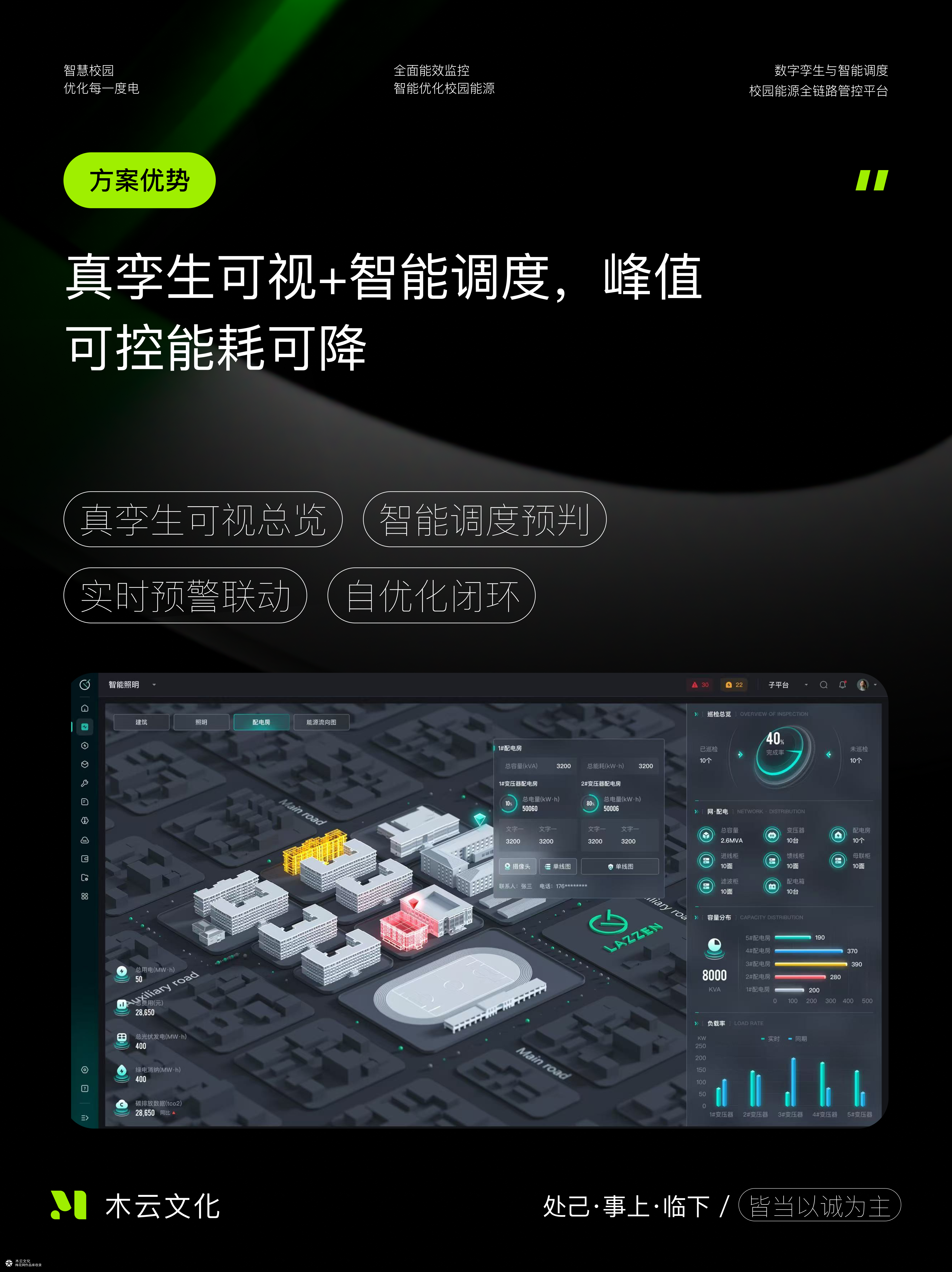 做校园能耗产品时,我们发现核心痛点从不是 “让用户看见数据”,而是 “数据到管控的链路太长 —— 看见问题却没法当场解决”。 所以我们用「数字孪生 + AI 调度」搭了套闭环交互:把各楼宇分散用能数据,整合成一张 “可操作图谱”—— 一屏直达全校总览,负荷预测前置,预警弹窗直接带处置建议,异常定位用两步导航、三步闭环流程落地。 还加了空间语义标注、阈值色阶可视化、同轴时间线联动,就是为了让决策不依赖 “感觉”,靠界面引导就能精准操作。 落地后看数据:峰值可控、过载减少,需量电费省 5%-12%,误警降 30%-50%—— 本质是用交互缩短 “感知 - 决策 - 执行” 链路,让校园能耗真的 “控得住、降得下”。