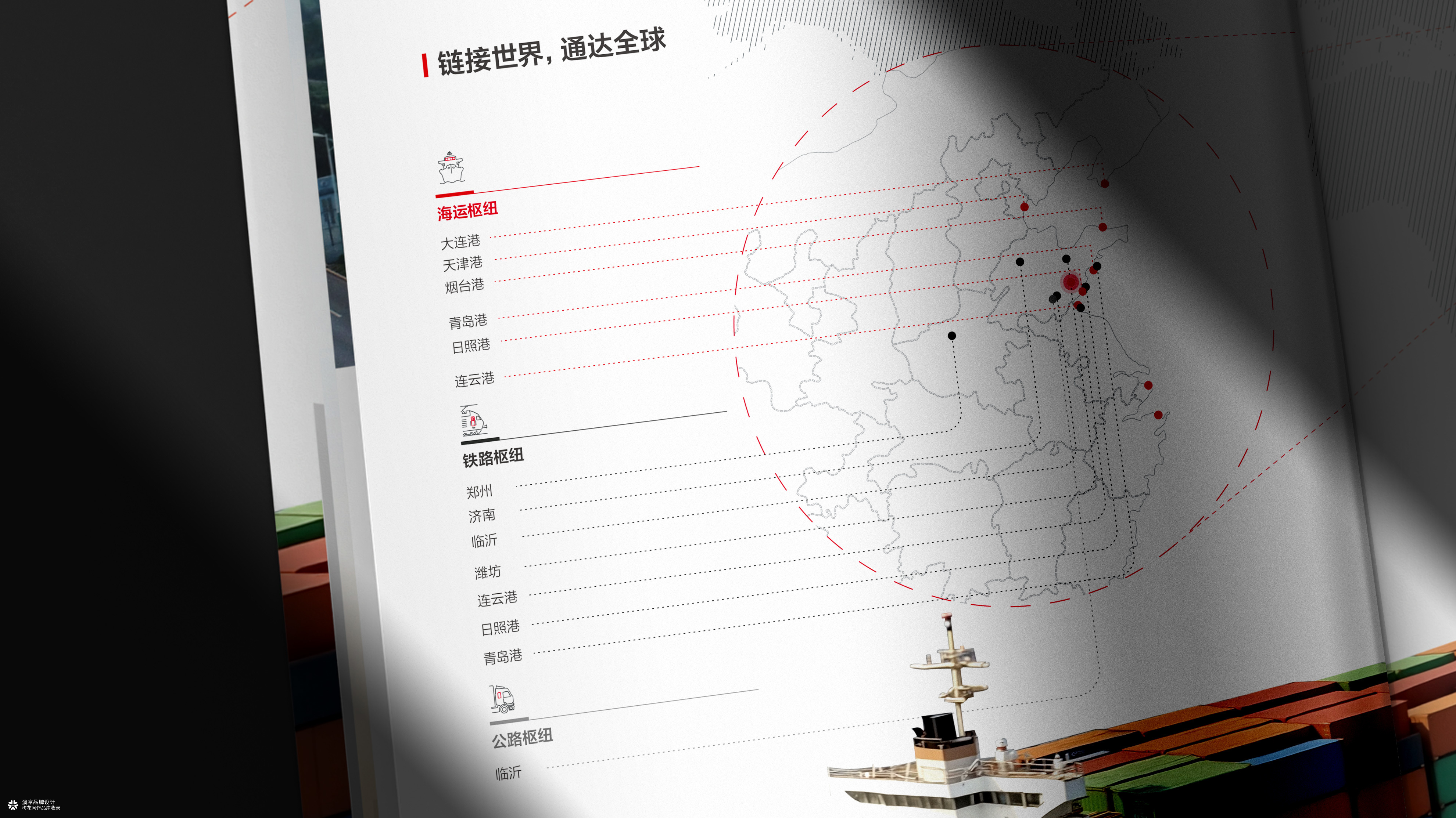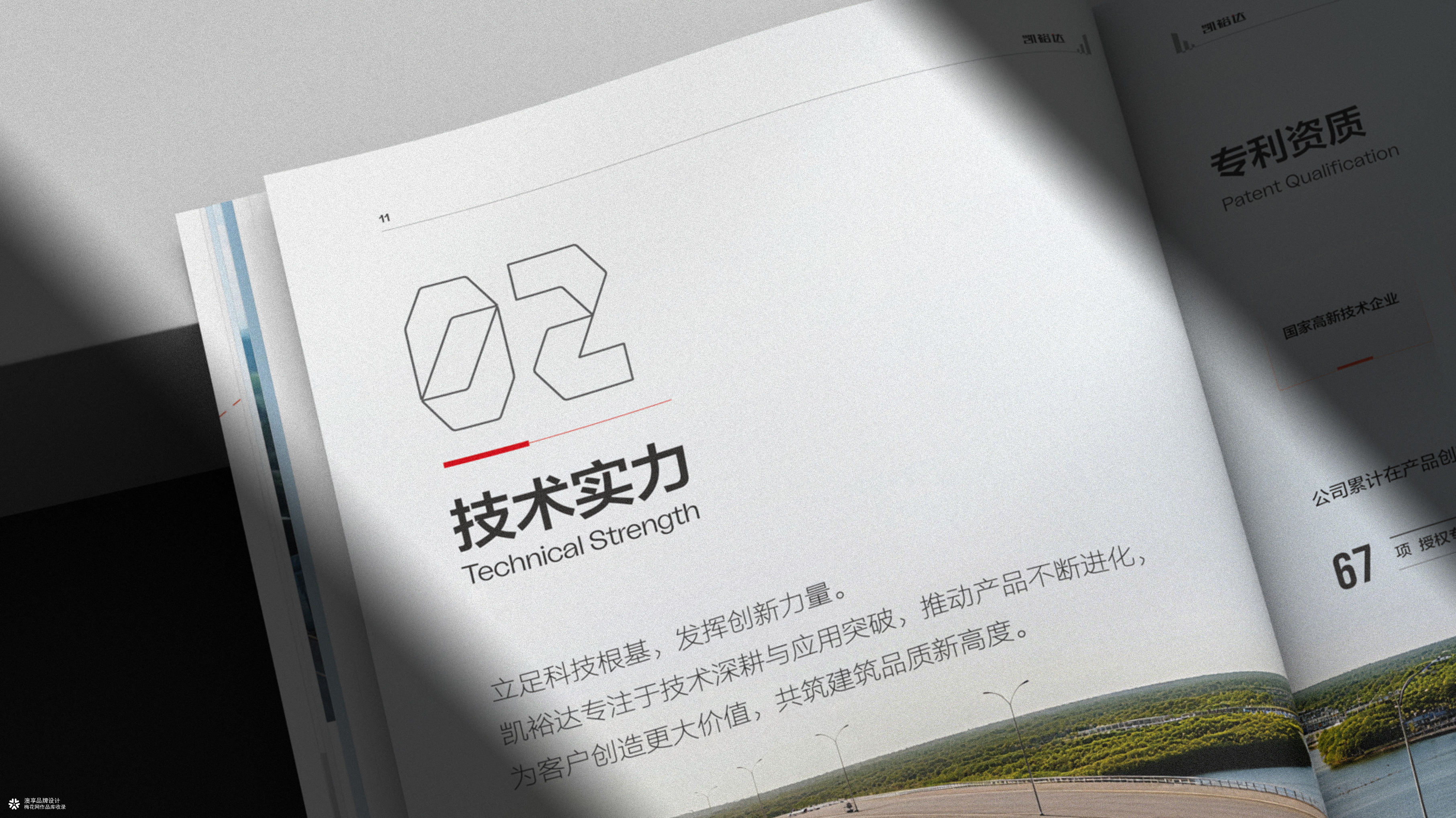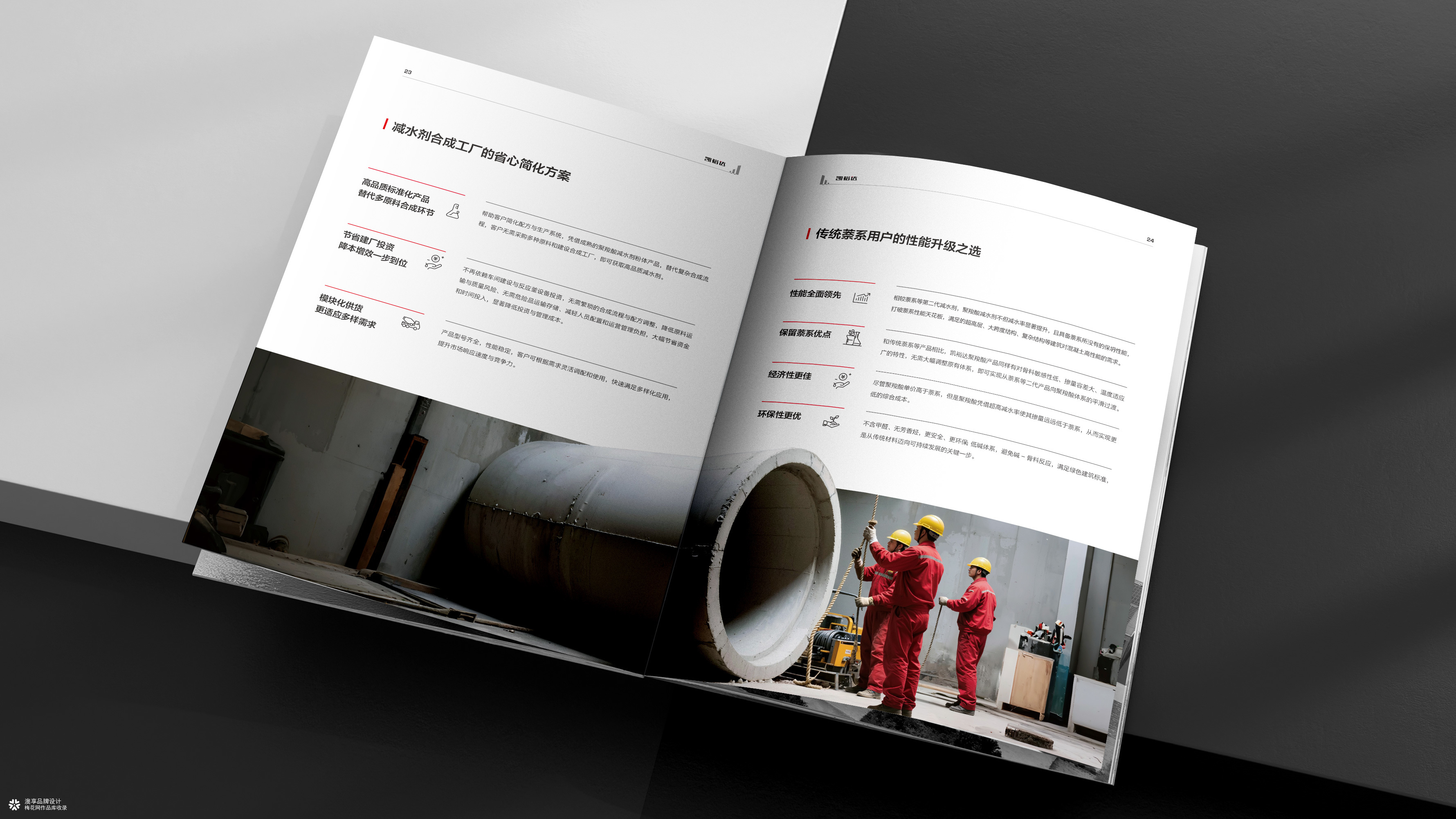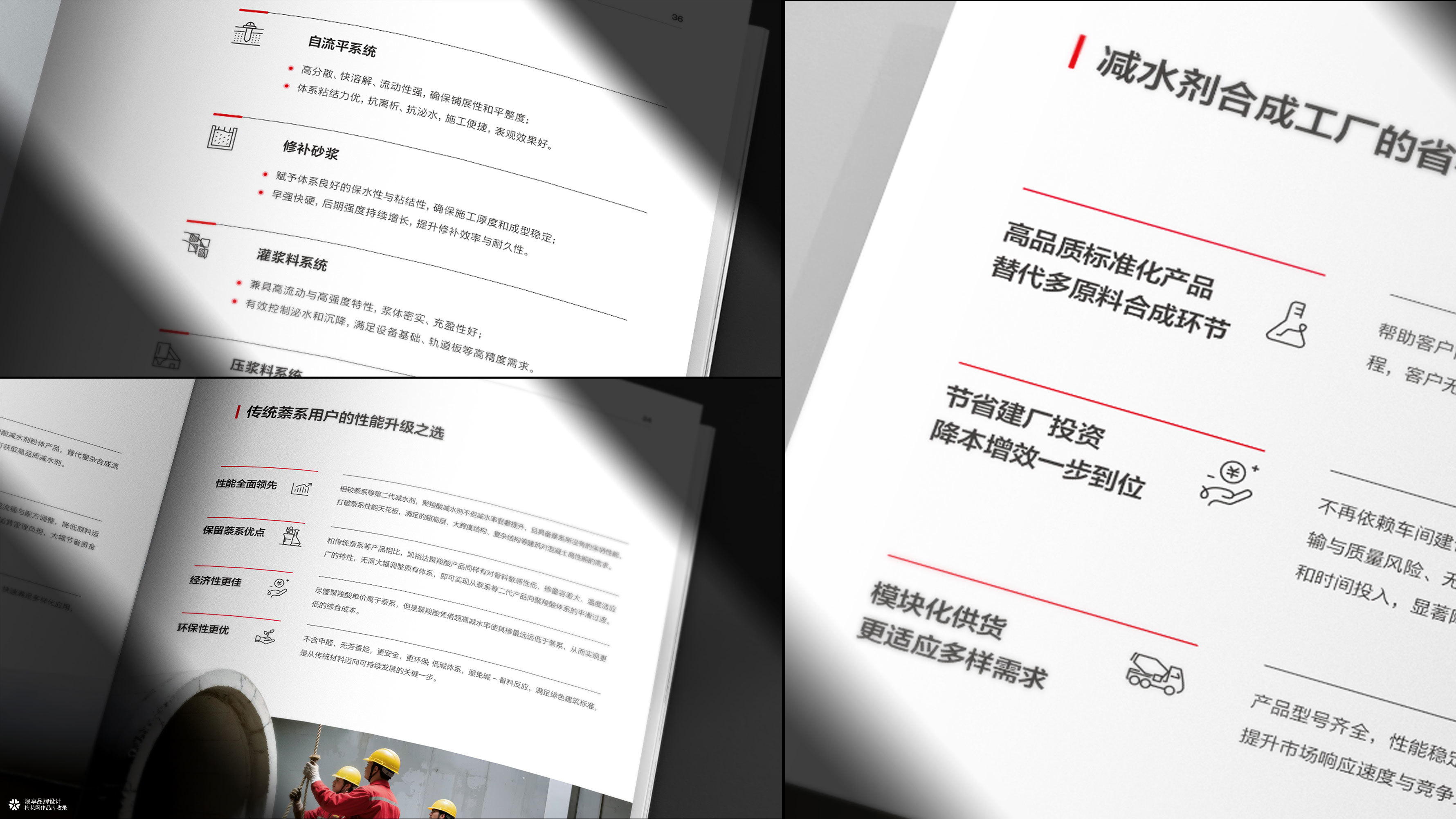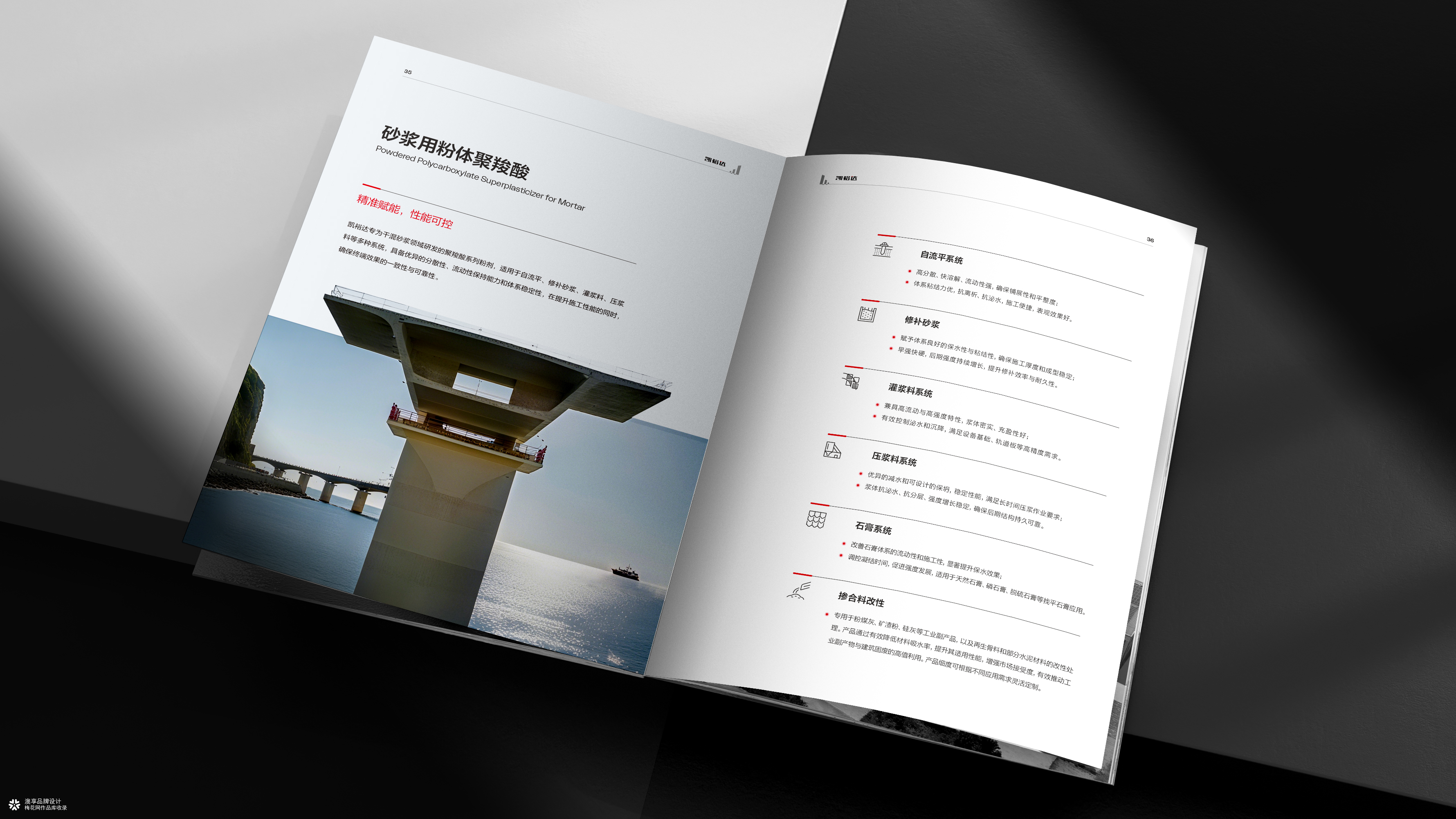 一、封面采用简洁的几何切面造型,通过利落的线条,展现出产品所属领域的严谨性与技术属性,同时搭配浅灰色与白色的基底,更具现代感与视觉层次,传递出企业在相关领域追求精准、高效的理念。 二、内页采用跨页的城市建筑景观图,展现出大气、开阔的视觉效果,文字排版简洁明了,便于读者快速获取企业相关介绍信息,体现出画册内容的条理性。以时间轴形式搭配红色节点标识梳理发展历程,增强视觉引导; 三、可视化+场景化: 1、地图 + 实景图将区位地图 + 实景图将区位,使物流优势具象化,分栏资质专利以 “数据 + 解读” 构建信任,降低技术信息传播门槛,适配多元受众。 2、以黑白灰线稿城市图结合红色标注,直观呈现多领域应用场景;通过圆形图示展示安全生产环节,以实验室实景图凸显质量管控的重视与投入,全方位传递企业与产品的专业形象、优势及理念。
