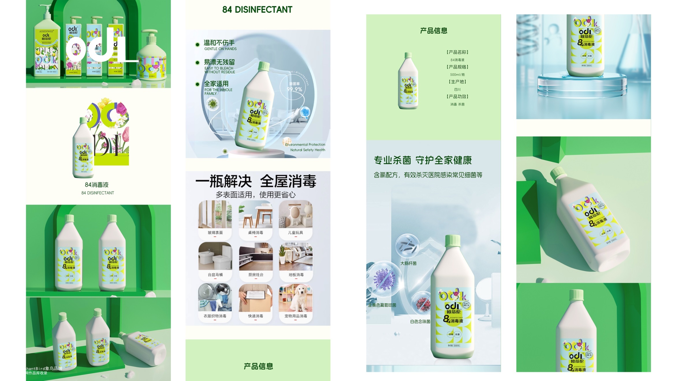ODL欧蒂伦日化全新品牌升级设计,ODL长期专注消费日化品(洗手液、沐浴露、洗发水、宠物液、香氛液、84消毒液.......),工厂研发+生产+销售一体,从OEM到ODM再到现在自创品牌,多渠道多场景多细分拓展。象鸟设计本次解决ODL众多产品怎么突出品牌化家族化,采用产品品牌色,视觉现代欧式结合,把99.9%杀菌抑菌+独特研发多种香氛结合。让品牌更加国际化和柔和。具体设计全系包装设计+电商体系设计+TOB渠道设计。