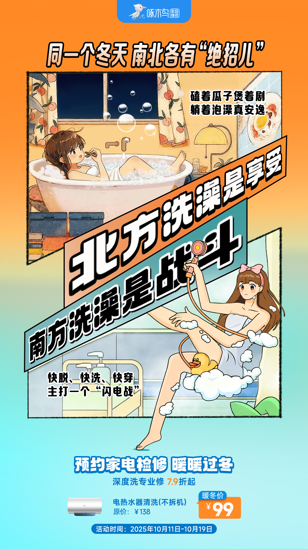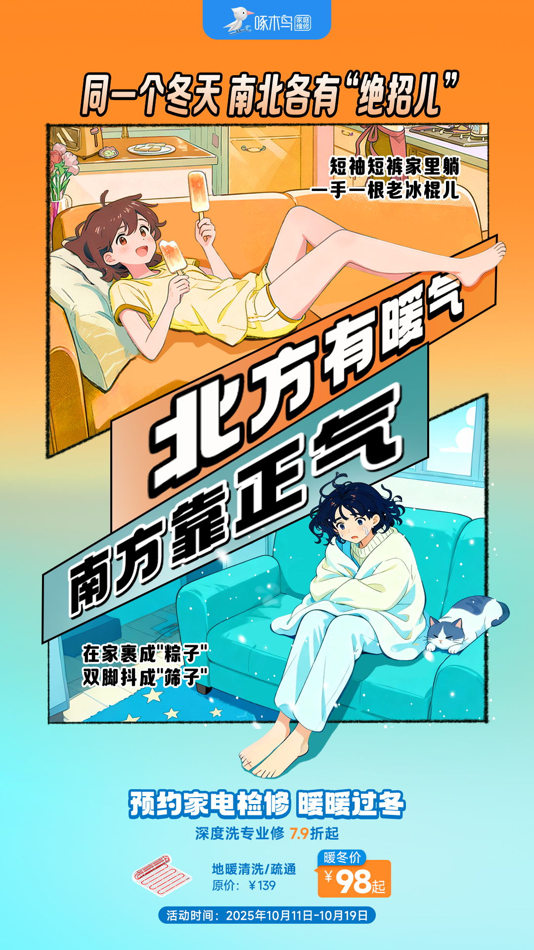 啄木鸟家庭维修趣味海报——南北冬天各有"绝招儿"