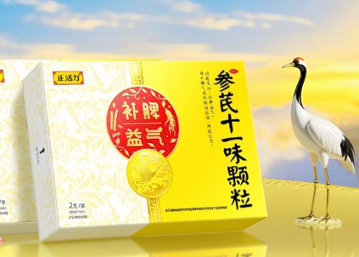 包装策划设计主题:【御用尊黄,补益正气】参芪十一味颗粒,为生命注入帝王般的活力! 药品包装设计 一眼望去,尊贵帝王黄席卷而来,这不仅是色彩的盛宴,更是千年滋补智慧的传承象征。盒身上苍劲有力的 “补脾益气” 四字,直击根本,道出健康真谛——万物生长靠土培,人体元气靠脾生。脾土肥沃,则气血自足,百病不生! 翩然立于其上的仙鹤,不仅是品牌的高洁印记,更是东方智慧中长寿与生命活力的永恒图腾。它寓意着本品如仙鹤送福,助您滋养五脏,强健根基,延展生命的活力与长度。 参芪十一味颗粒,深谙“正气存内,邪不可干”的古训: ✅ 精选人参、黄芪等十一味珍贵药材,君臣佐使,科学配比。 ✅ 专注补气养血、健脾益肾,从根源改善疲惫乏力、面色萎黄、食欲不振、体虚易感。 ✅ 特别适用于放、化疗后,有效升高白细胞,改善虚弱体质,助力恢复,为健康保驾护航。 每日三杯,为身体注入“元气黄金”! 无论是追求高品质健康生活的您,还是正处于术后、病后恢复期的家人,这抹耀眼的帝王黄,都是您值得托付的强健基石。 南风盛世包装设计公司说:选择参芪十一味颗粒,就是选择一种尊贵而有效的健康投资。让千年滋补智慧,守护您今日的活力与明日的安康。