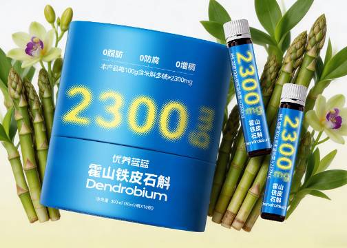 优养蓝蓝铁皮石斛口服液全案包装由广州宏洛图品牌设计打造,服务涵盖保健品包装设计、品牌视觉系统设计及产品视觉营销策划,核心关键词:霍山铁皮石斛包装、保健品口服液包装、广州保健品包装设计。 优养蓝蓝是专注高端滋补的新锐品牌,其核心产品铁皮石斛口服液,主打高含量米斛多糖(每100g≥2300mg),采用0脂肪、0防腐、0增稠的纯净配方。宏洛图以「科技感+天然感」为核心设计理念,选用科技蓝为主色调,搭配渐变呈现的「2300mg」核心数字,融入霍山铁皮石斛原生植物元素,为品牌打造高辨识度视觉体系。 单瓶设计采用深棕避光瓶身搭配撞色设计,重点强化核心卖点;礼盒设计清晰标注三大核心优势,提升产品质感与送礼属性;全案视觉风格统一,适配电商、线下门店等多渠道场景,有效强化产品卖点、升级品牌质感、提升转化效率。 宏洛图品牌设计深耕包装设计领域10余年,专注滋补、美妆等领域,秉持「美学赋能商业」理念,助力品牌市场突围。 本项目完整案例及更多品牌包装设计作品,已同步发布于宏洛图品牌设计官方网站,欢迎查阅更多原创设计案例。